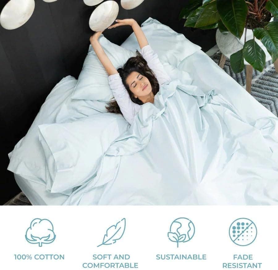 Este set de sábanas completo de 4 piezas incluye 1 sábana ajustable de 54 x 75 pulgadas, 1 sábana plana de 81 x 96 pulgadas y 2 fundas de almohada estándar/reina de 20 x 30 pulgadas. Hecho de algodón egipcio de primera calidad de fibra larga, este set de sábanas ofrece una tela suave, lisa y duradera con un elegante tejido satén. La construcción de 800 hilos asegura una sensación densa pero transpirable para una experiencia de sueño tipo hotel en casa. Los bolsillos extra profundos de 18 pulgadas con borde elástico del sábana ajustable se ajustan de manera segura incluso a los colchones más gruesos, incluyendo aquellos con toppers o almohadillas. Perfecto para personas que duermen calientes, estas sábanas proporcionan una excelente transpirabilidad y propiedades que eliminan la humedad, asegurando que permanezca fresco y cómodo durante toda la noche. El tejido satén añade un acabado sedoso mientras promueve el flujo de aire. Estas sábanas están diseñadas para ser lavables a máquina y mantener su suavidad, color y calidad a través de lavados repetidos. Resisten la decoloración, el apelotonamiento y las arrugas, lo que las convierte en una adición duradera y de bajo mantenimiento a su dormitorio.