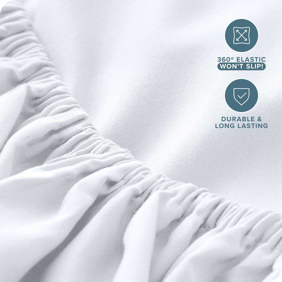 3. ELÁSTICO EN TODOS LOS BORDES: La sábana ajustable tiene elástico en todos los bordes para sujetar y ajustar mejor el colchón y mantenerlo en su lugar toda la noche.