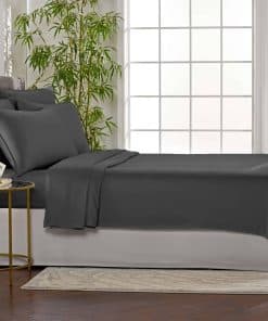 Elaboradas con la fina calidad de viscosa suave 100% orgánicamente cultivada derivada del bambú, estas sábanas son naturalmente termorreguladoras para mantenerte fresco y relajado mientras duermes, proporcionando comodidad durante todas las estaciones. Ideal para aquellos que duermen caliente o tienen piel sensible. Las propiedades que absorben la humedad de nuestra ropa de cama de calidad de resort son perfectas para proporcionar un lujo suave que se vuelve aún más suave con cada lavado. Incluye 1 sábana ajustable, 1 sábana plana y 2 fundas de almohada con cierre superpuesto. Las fundas de almohada y la sábana plana tienen costuras dobles de calidad para garantizar durabilidad duradera y fácil cuidado con lavado en agua fría, ofreciendo una sensación sedosa que se vuelve cada vez más lujosa con cada lavado. Las sábanas ajustadas tienen bordes totalmente elásticos para un ajuste perfecto en cualquier colchón de hasta 16 pulgadas de grosor. Todas están hechas de tela de tejido de satén de 300 hilos para una sensación más suave, suave y sedosa que incluso las sábanas de algodón de mayor cantidad de hilos. La opción de 300 hilos es la elección óptima para resistencia a la formación de bolitas, ya que los recuentos de hilos más altos significan fibras más delgadas y débiles. Cada compra de ropa de cama está respaldada por una garantía de por vida libre de riesgos contra defectos de materiales y mano de obra. Duerme tranquilo en estas sábanas suaves como la seda, sabiendo que nuestras sábanas están hechas de materiales obtenidos de manera responsable. Diseñado en Florida e importado de China. Todos los tejidos han sido sometidos a estándares rigurosos de prueba de inflamabilidad (Aprobado/ASTM F963-A6), metales pesados (Aprobado/ASTM E1479-16) y ftalatos (no detectados según CPSC CH C1001-09.3).