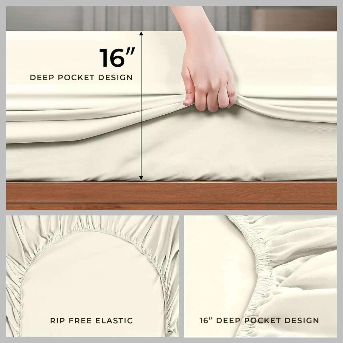 2. BOLSILLOS PROFUNDOS/ AJUSTE FÁCIL DE 16��: Estas sábanas están diseñadas para acomodar colchones de hasta aproximadamente 16 pulgadas de profundidad. Sin embargo, si tu colchón es más pequeño que 16 pulgadas, puedes estar seguro de que seguirá encajando perfectamente.