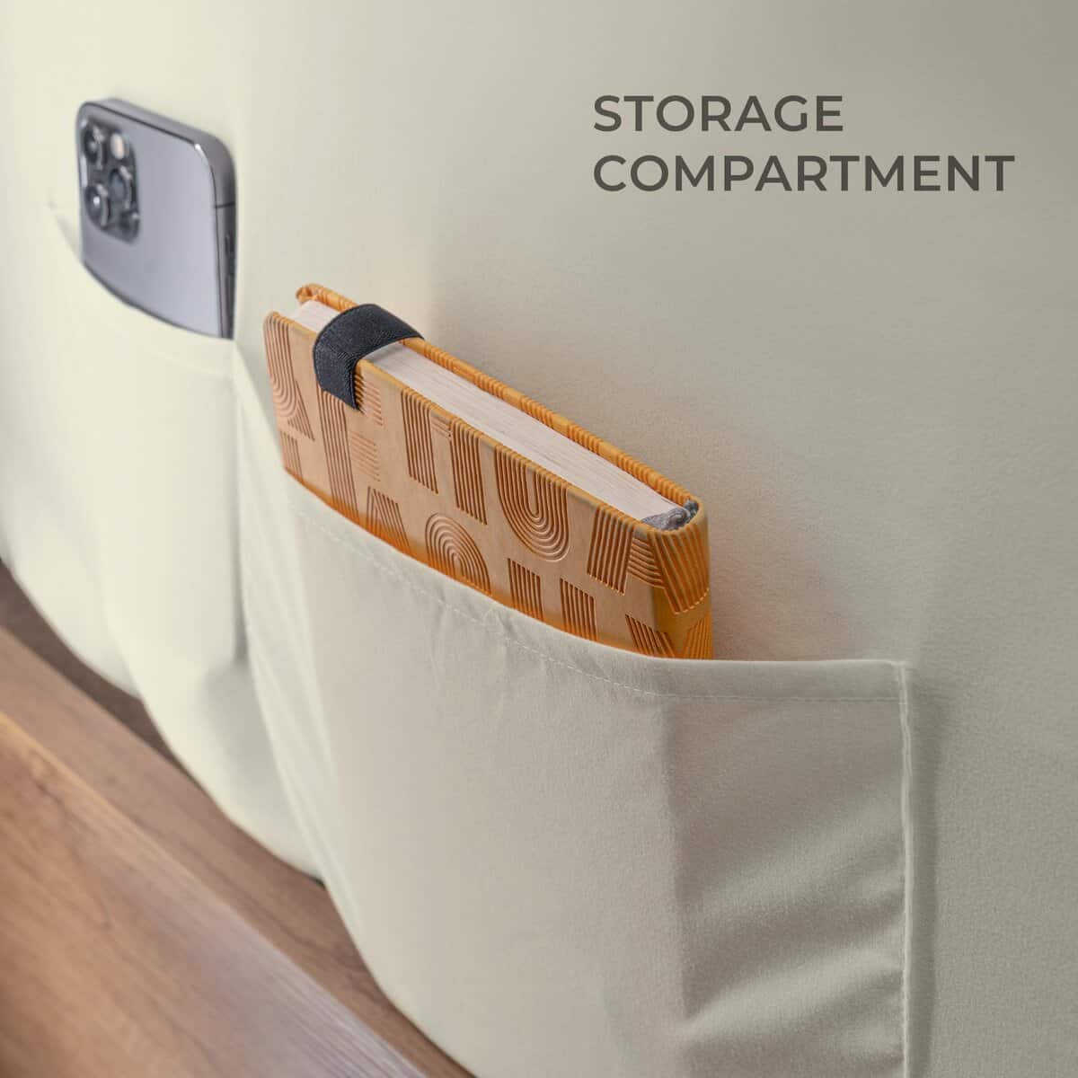 4. PRESENTAMOS LA INNOVADORA SÁBANA CON DEPARTAMENTO DE ALMACENAMIENTO. Te presentamos nuestra revolucionaria sábana bajera con bolsillo de almacenamiento. Con dos divisiones, el práctico bolsillo está diseñado para albergar tus gafas, controles remotos, teléfonos celulares, libros y otros pequeños objetos, manteniéndolos fácilmente accesibles. Di adiós a los problemas y disfruta de un acceso rápido a tus esenciales con nuestra innovadora sábana bajera.