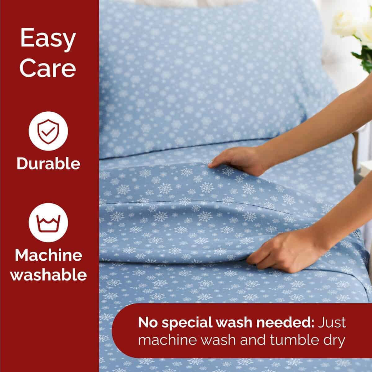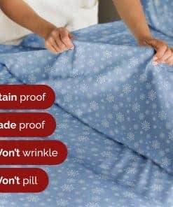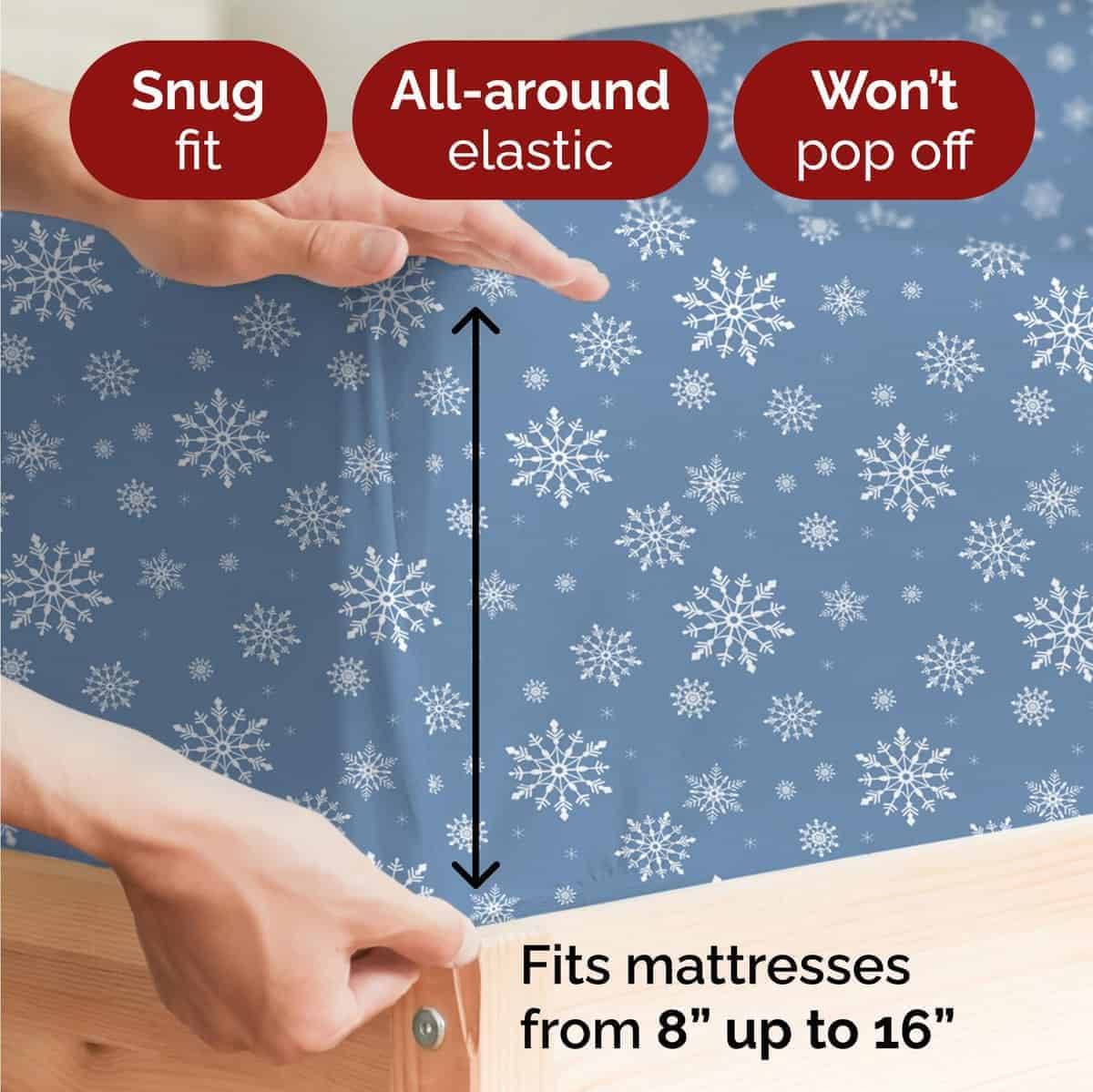 ¡Ten una temporada navideña muy alegre con nuestro juego de sábanas festivo de 4 piezas! Incluye 2 fundas de almohada, 1 sábana plana y 1 sábana ajustable en un hermoso diseño de copos de nieve azules. Las sábanas cuentan con bolsillos profundos que se ajustan a colchones de hasta aproximadamente 16 pulgadas de profundidad, lo que las hace muy fáciles de poner y quitar. Estas sábanas son verdaderamente suaves y transpirables, perfectas para garantizar una noche de sueño fresca y cómoda. Fabricadas con microfibra cepillada de la más alta calidad, estas sábanas son más suaves que las sábanas de algodón orgánico y egipcio. Además, son increíblemente asequibles, lo que las convierte en una excelente opción para cualquier hogar. ¡Haz de esta temporada navideña un momento aún más especial con estas sábanas navideñas para mujeres, hombres, niños y adolescentes!