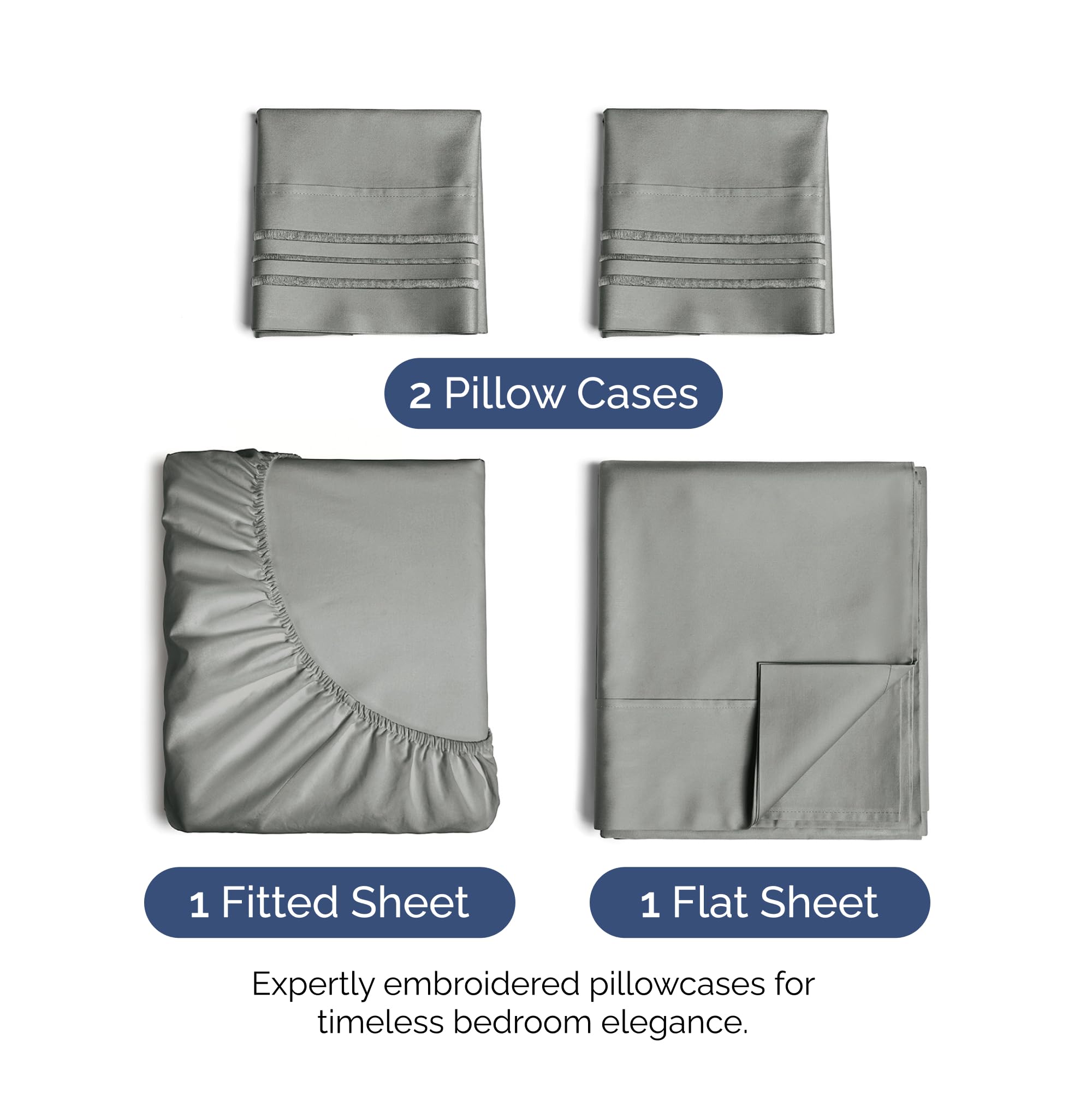 Juego de sábanas completo de 4 piezas – -Gris pizarra