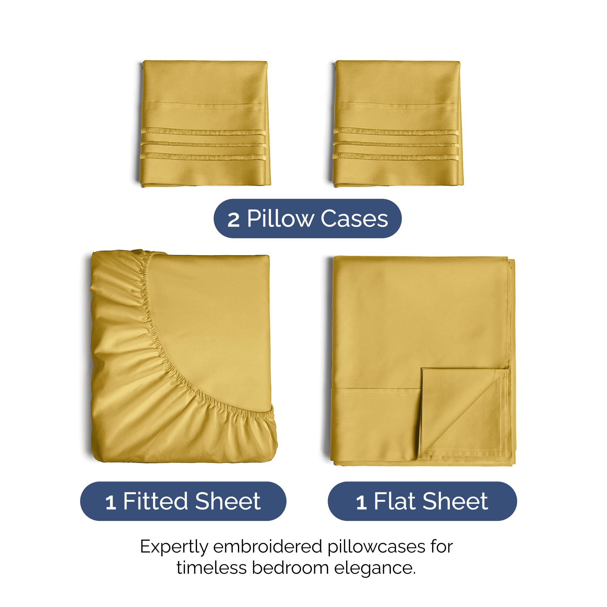 Juego de sábanas completo de 4 piezas – -Mostaza