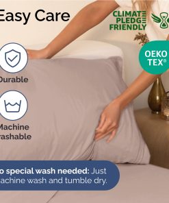 Conjunto de ropa de cama de lujo de 4 piezas que incluye 2 fundas de almohada, sábana plana y sábana ajustable. La sábana plana tiene unas dimensiones de 96 x 81 pulgadas, la sábana ajustable de 75 x 54 pulgadas y las 2 fundas de almohada de 20 x 30 pulgadas cada una. Los bolsillos profundos y el ajuste fácil permiten que estas sábanas se adapten a colchones de hasta 16 pulgadas de profundidad. Disfrute de la suavidad excepcional de estas sábanas, que son transpirables, frescas y super suaves. Están hechas de microfibra cepillada de la más alta calidad, lo que le brinda un toque suave y fino. Ideal para cualquier habitación de su hogar, ya sea el dormitorio, la habitación de invitados, el RV o la casa de vacaciones. Estas sábanas son una excelente relación calidad-precio, ofreciendo comodidad y suavidad a un precio razonable.