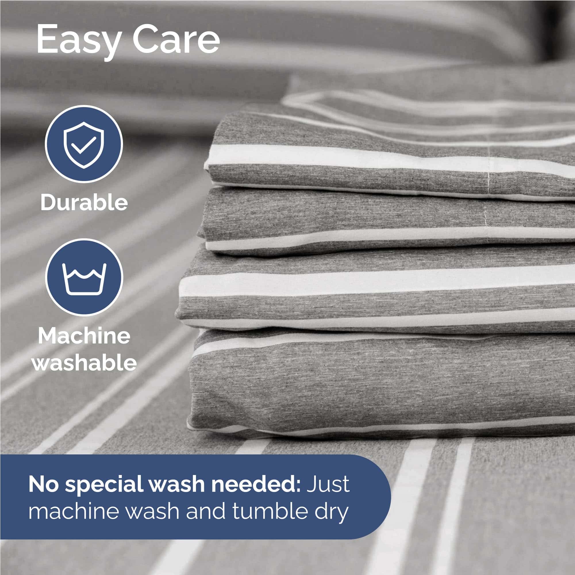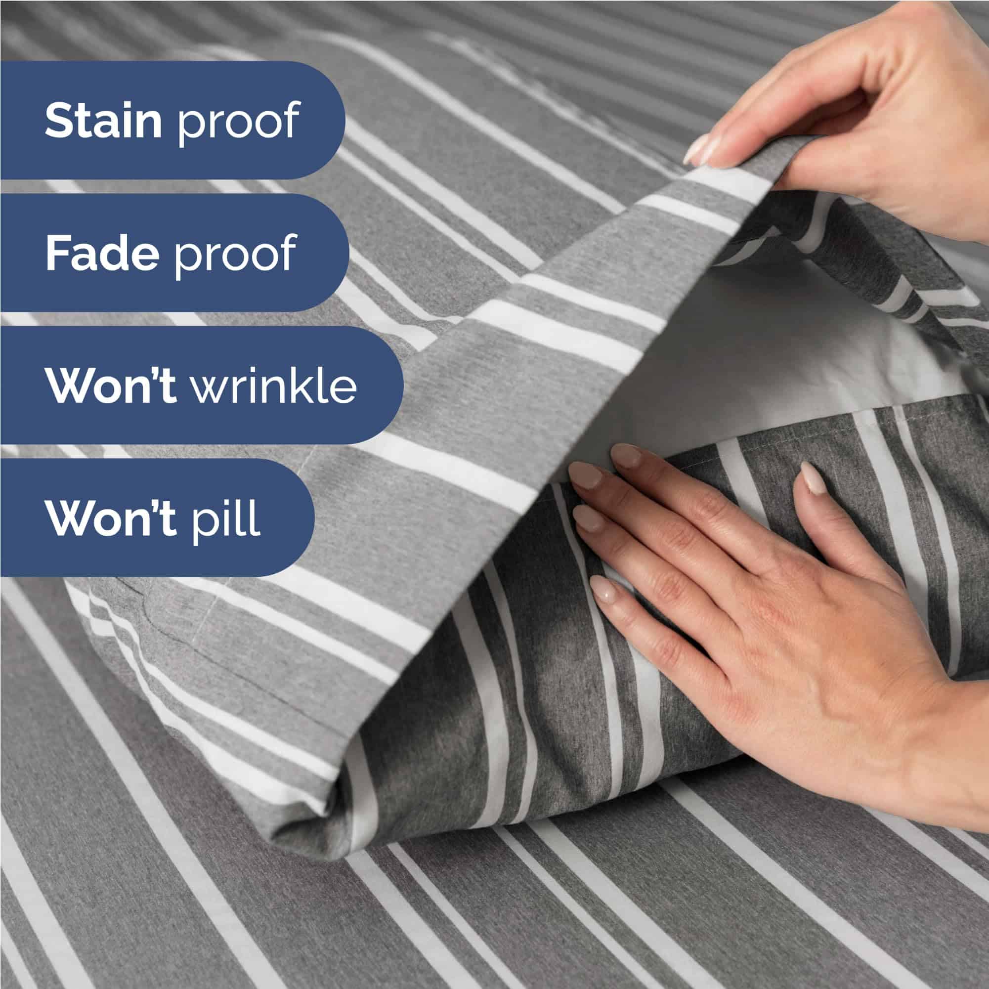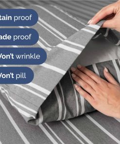 Juego de sábanas de 4 piezas que incluye 2 fundas de almohada, sábana plana y sábana ajustable en rayas grises. Las sábanas son suaves, transpirables y refrescantes, ideales para mujeres, hombres, niños y adolescentes. Con bolsillos profundos y ajuste fácil que se adapta a colchones de hasta 16 pulgadas de profundidad. Hechas de microfibra cepillada de la más alta calidad, estas sábanas son increíblemente suaves al tacto. Un juego de sábanas de alta calidad a un precio asequible.