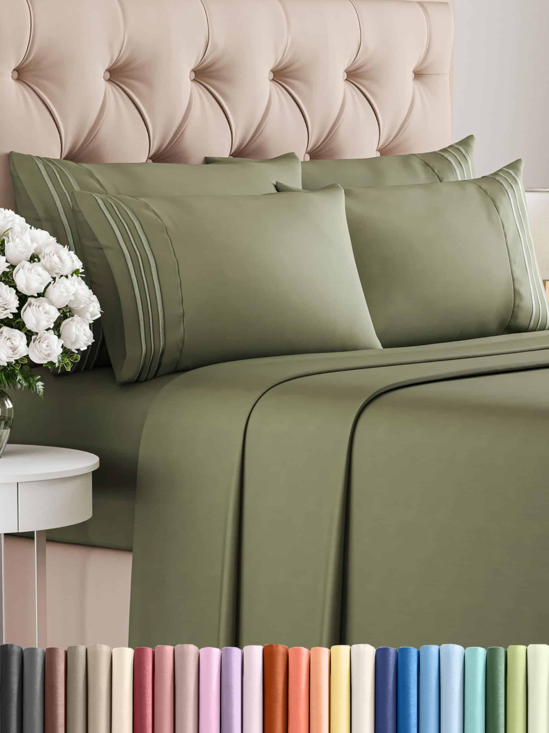 Juego de Sábanas Completo de 6 Piezas – Cómodas, -Verde Salv