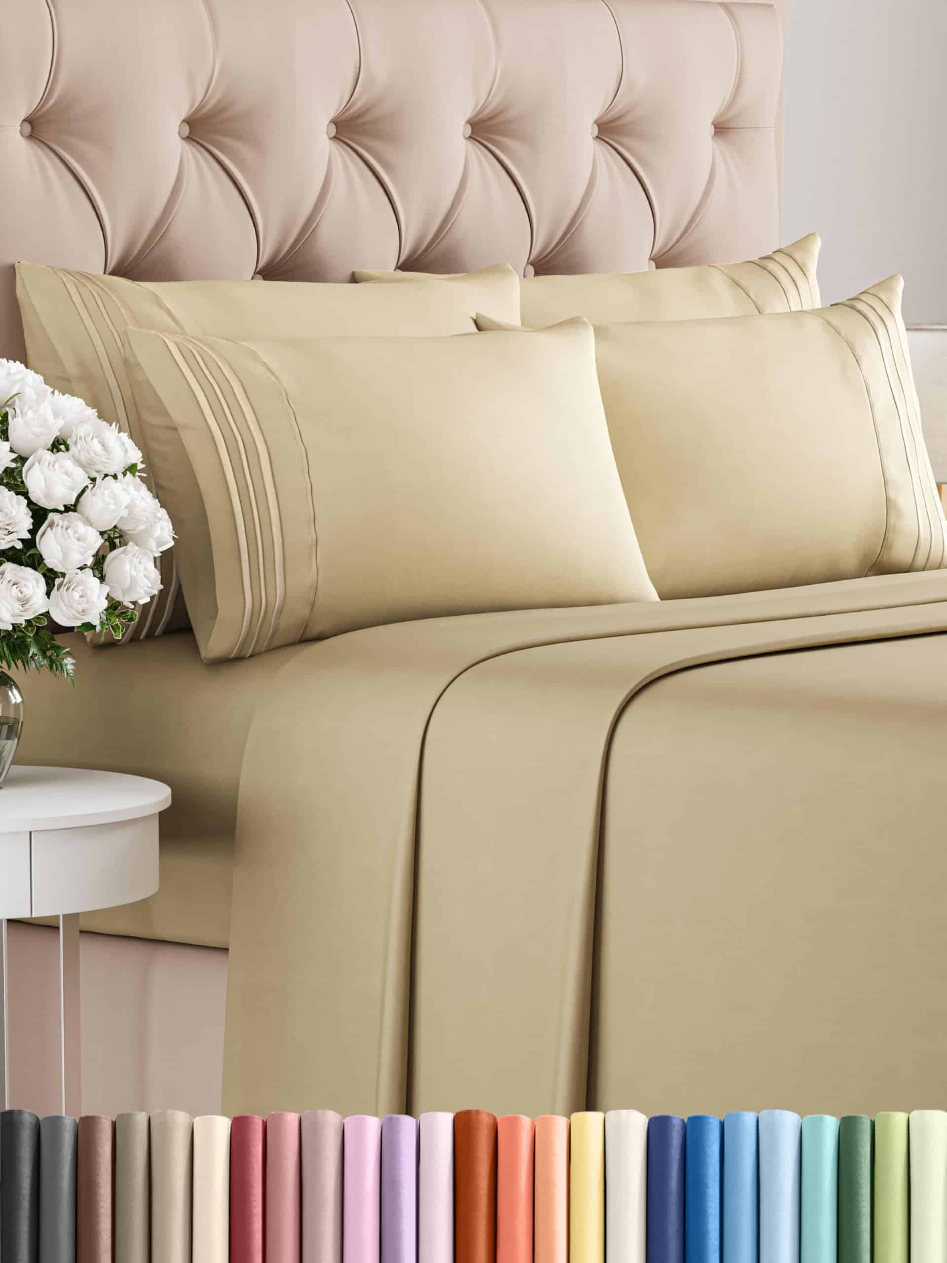 Juego de sábanas completo de 6 piezas – Cómodo, -Beige