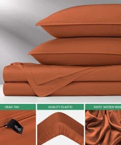 Con bolsillos ajustados profundos y un tejido de satén de 300 hilos, nuestras sábanas ofrecen un ajuste perfecto para cualquier colchón de hasta 16 pulgadas de grosor. La tela de satén de 300 hilos proporciona una sensación más suave, más suave y más sedosa que incluso las sábanas de algodón de mayor cantidad de hilos, garantizando resistencia a la formación de bolitas y durabilidad a largo plazo.