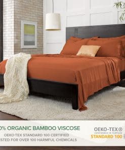 Hecho con la mejor calidad de viscosa derivada de bambú orgánicamente cultivada, nuestras sábanas de Pure Bamboo son suaves al tacto y certificadas por OEKO-TEX Standard 100, lo que garantiza que están libres de más de 100 sustancias dañinas para la salud. Nuestras sábanas de cama nunca se mezclan con otras fibras o telas, a diferencia de la mayoría de los competidores, lo que garantiza una experiencia de sueño pura y natural.