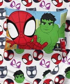 El juego completo de sábanas Sunny Side Up Spidey & His Amazing Friends es la opción perfecta para llevar la diversión y la emoción al dormitorio de tu hijo. Este juego de sábanas de microfibra de súper héroes presenta a los personajes favoritos de los niños, como Spidey, Miles Morales, Ghost Spider, The Hulk y Black Panther, en colores vibrantes que seguramente alegrarán a cualquier fanático de los cómics. El juego incluye una sábana ajustable, una sábana plana y dos fundas de almohada estándar reversibles para crear una cama cómoda y acogedora para tu pequeño héroe. Además, la ropa de cama es fácil de cuidar, ya que se puede lavar a máquina en frío y secar a baja temperatura. Completa la colección con otros productos de Spidey & His Amazing Friends para crear un ambiente de ensueño en la habitación de tu hijo. Descubre la alegría de dormir con la ropa de cama Sunny Side Up y haz que cada noche sea una aventura encantadora.