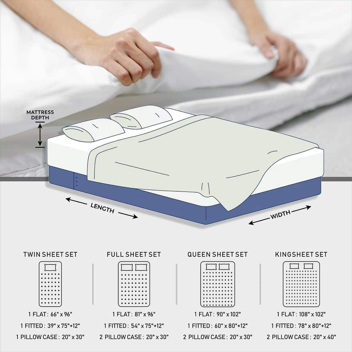 4. ¿Qué Incluye el Set?: Nuestro juego de sábanas completo incluye 1 sábana plana (81 pulgadas de ancho x 96 pulgadas de largo), 1 sábana ajustable (54 pulgadas de ancho x 75 pulgadas de largo) y 2 fundas de almohada estándar (20 pulgadas de ancho x 30 pulgadas de largo) para adaptarse mejor a tus requerimientos.