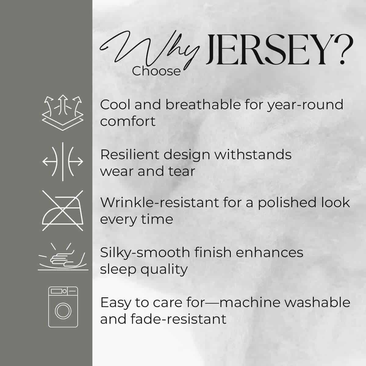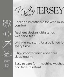 2. Tu Compañero de Todas las Estaciones: Nuestros juegos de sábanas y fundas de almohada de jersey están diseñados para ser frescos al tacto, asegurando que te mantengas cómodamente frío en días soleados mientras permaneces agradablemente cálido en días invernales.