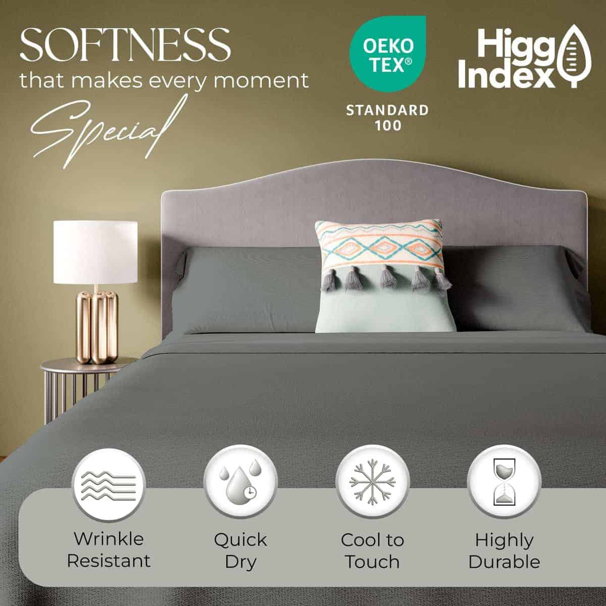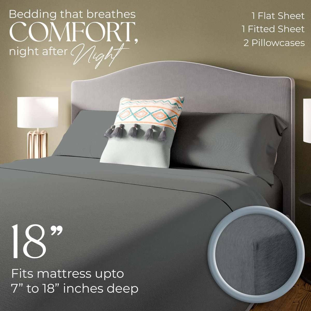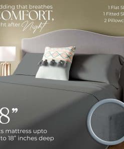 3. Ajuste Perfecto para tu Colchón: Nuestra sábana ajustable completa está totalmente elasticada para adaptarse a colchones de hasta 14 pulgadas, permitiendo un ensamblaje ajustado incluso con diferentes profundidades de colchones. También cuenta con una «Etiqueta Inteligente de Cabecera/Piecera» para indicar a qué lado pertenece para mayor facilidad de uso.