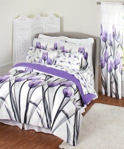 Juego de sábanas con flores de tulipán morado y fundas a