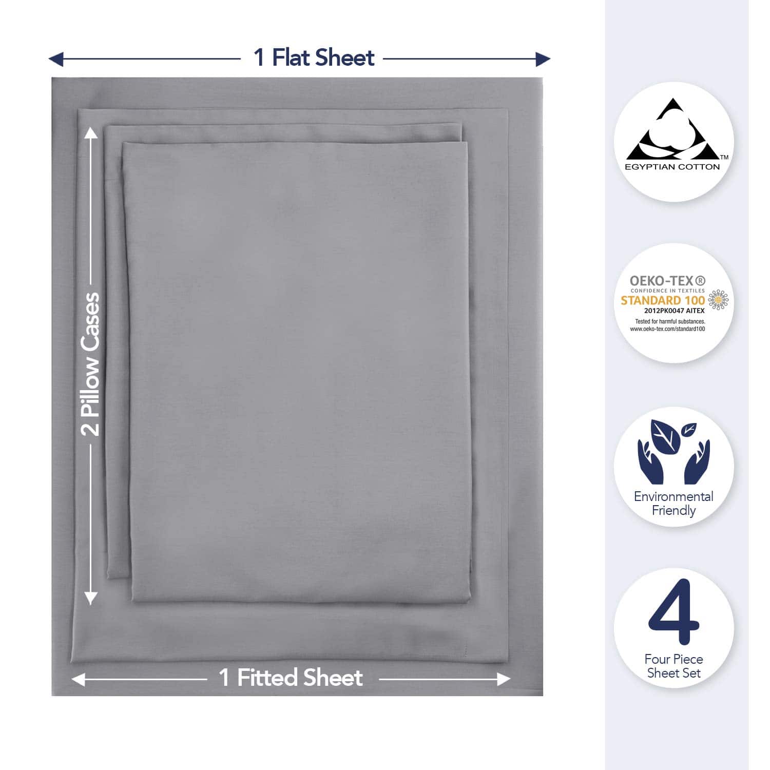 Nos esforzamos por obtener sábanas 100% puras de algodón sosteniblemente producido de alta calidad que contienen 300 hilos, que durarán más que cualquier otra sábana de algodón egipcio. Tejido densamente con algodón egipcio puro de 100% y un rico tejido de satén para obtener unas sábanas suaves y sedosas disponibles en varios colores. Certificados como las mejores sábanas de algodón egipcio con garantía de satisfacción. Ideal para regalos éticos y amigables con el medio ambiente para cualquier ocasión especial. ¡Eleva el ambiente de tu habitación con nuestro juego de sábanas de algodón egipcio!