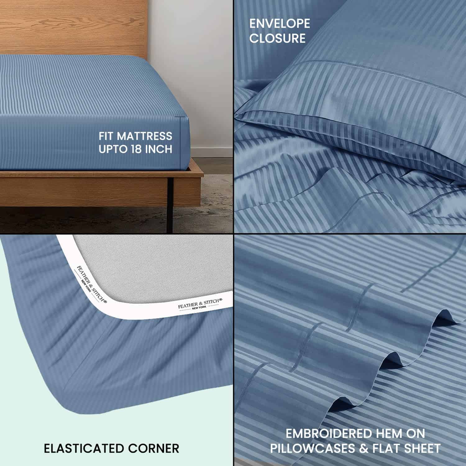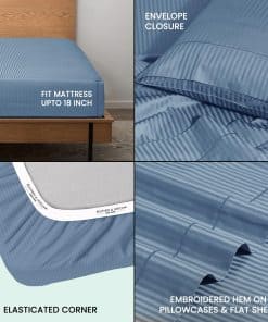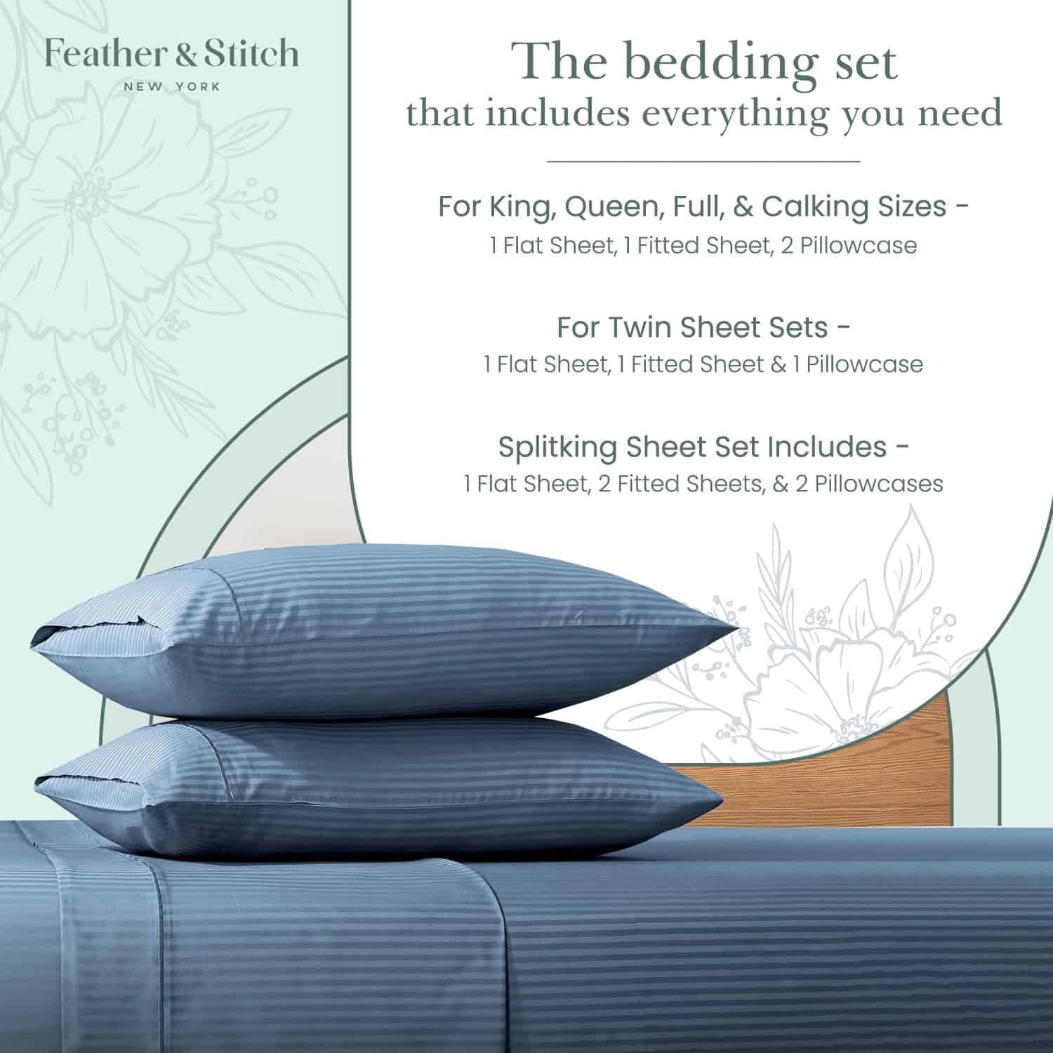 Incluido en este juego de sábanas de 5 piezas se encuentran detalles exquisitos en los bordes que añaden un toque de lujo a su ropa de cama. Estas sábanas vienen en una variedad de colores y tamaños, para que pueda elegir el set perfecto que complemente la decoración de su dormitorio. Este juego de sábanas incluye 2 sábanas ajustables completamente elásticas de tamaño Twin: 72″ W x 84″ L + 18″ bolsillos extra profundos; 1 sábana plana King: 108″ W x 102″ L, y 2 fundas de almohada King: 20″ W x 40″ L, convirtiéndolas en una solución completa de ropa de cama.