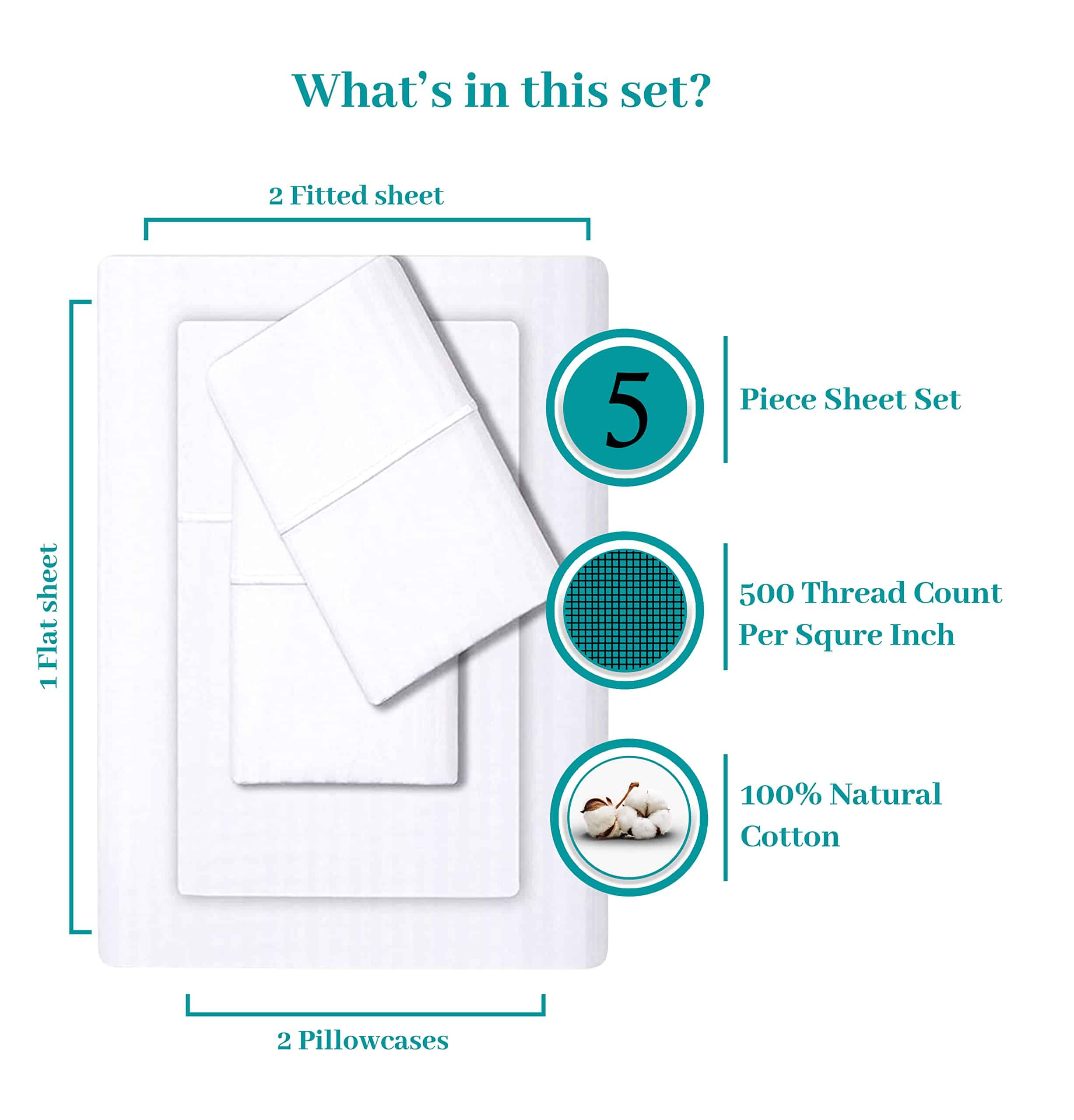 Este juego de sábanas de 5 piezas presenta detalles de dobladillo exquisitos que agregan un toque de lujo a tu ropa de cama. Las sábanas vienen en una variedad de colores y tamaños, por lo que puedes elegir el juego perfecto para complementar la decoración de tu dormitorio. Este juego de sábanas incluye 2 sábanas ajustables con elástico alrededor: 72″ W x 84″ L + 18″ bolsillos extras profundos; 1 sábana plana: 108″ W x 102″ L y 2 fundas de almohada estándar con cierre: 20″ W x 40″ L, lo que las convierte en una solución completa de ropa de cama. Haz sonreír a tus seres queridos con un regalo pensado que apreciarán para siempre con estas sábanas de algodón puro de Feather and Stitch, que son el regalo perfecto para cualquier ocasión. Además, cuentan con la certificación estándar 100 de OEKO-TEX para garantizar la más alta calidad y seguridad. Mantener la textura ultra suave de nuestras sábanas es sencillo, simplemente lavar a máquina en agua fría y no usar blanqueador. Secar en secadora a baja temperatura según sea necesario y lavar colores oscuros por separado. Con estas simples instrucciones de cuidado, puedes disfrutar de la sensación lujosa de nuestras sábanas durante años sin encoger ni formar pelusa.