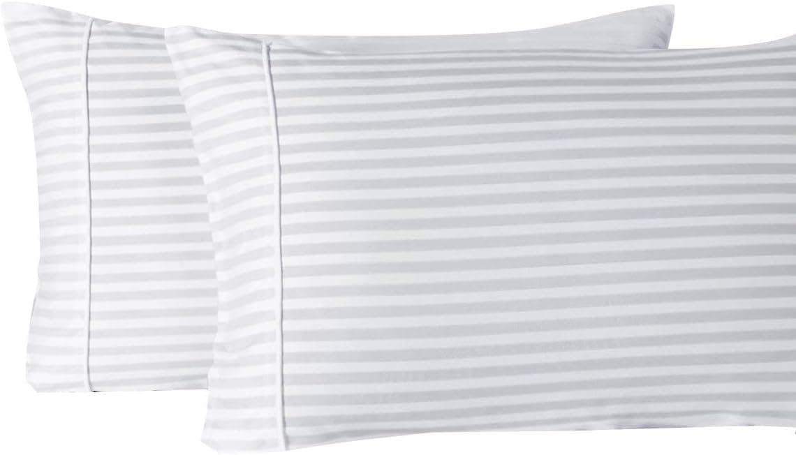 Disfrute de la suavidad y duerma plácidamente con estas sábanas tejidas de satén de 650 hilos por pulgada cuadrada, de hilo simple, lo que las hace más suaves que las de hilo doble. La tela blended de algodón con 70% de algodón le permite disfrutar de la suavidad y comodidad, y el 30% de poliéster se añadió para limitar y minimizar las arrugas. Estas sábanas duraderas vienen en una selección de colores naturales con rayas. Incluye una sábana plana Queen de 92 pulgadas de ancho x 102 pulgadas de largo, una sábana ajustable Queen de 60 pulgadas de ancho x 80 pulgadas de largo y dos fundas de almohada de 20 pulgadas de ancho x 30 pulgadas de largo cada una. Los bolsillos profundos de las sábanas ajustables se ajustan a un colchón de 15″ de profundidad y están totalmente elásticos para un ajuste ceñido pero seguro. Las sábanas planas y las fundas de almohada están hechas con dobladillo de 4 pulgadas y ribete. Fácil cuidado: lavable a máquina con colores similares, ciclo delicado con detergente suave. Sin lejía, secar a baja temperatura. Para evitar arrugas, coloque sus sábanas y fundas de almohada en su cama / almohada justo después de sacarlas de la secadora.