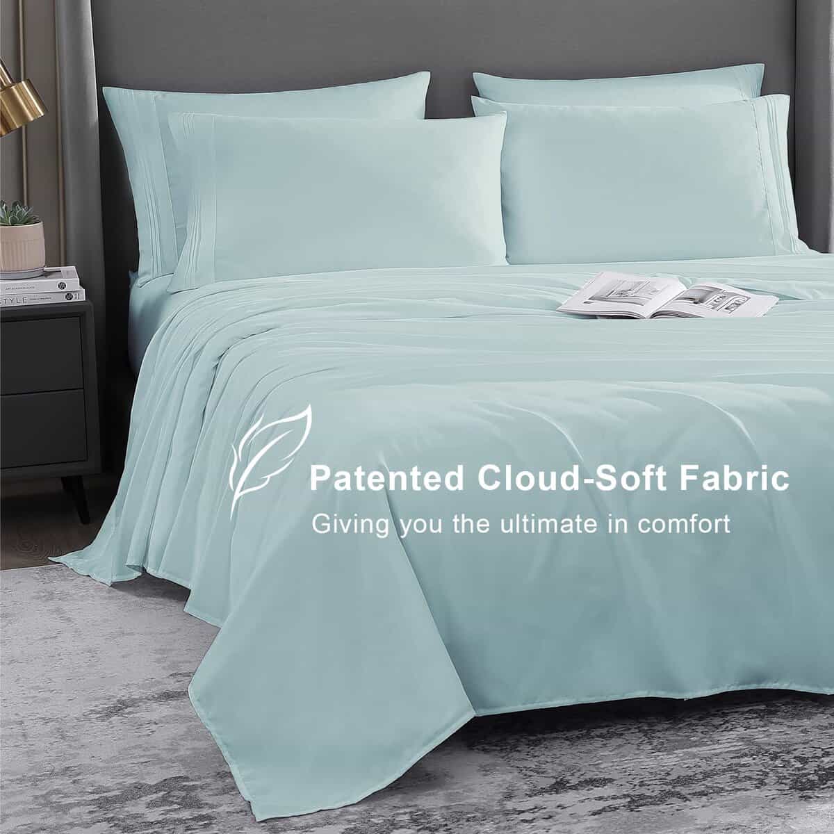 Patentado Cloud-Soft Fabric: Nuestras sábanas queen ofrecen un nivel incomparable de comodidad. El tejido patentado suave como las nubes proporciona una sensación táctil maravillosa similar a las nubes, brindándote una experiencia de sueño más cómoda y mejorando la calidad de tu descanso.