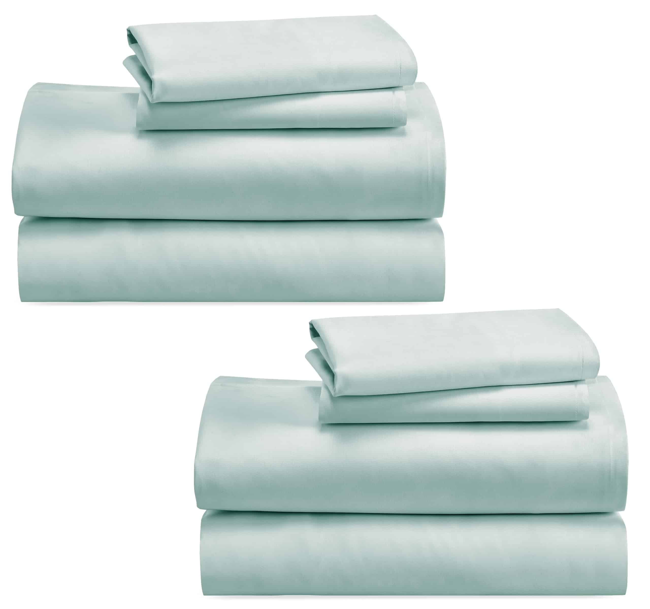 Conjunto de sábanas Queen de 2 piezas – juego de sábanas hecho de tela de satén de algodón naturalmente cómoda al 100%. Estos juegos de sábanas de tamaño Queen suaves, transpirables y frescos están diseñados para brindar comodidad duradera, durante todo el año. Estas sábanas de algodón frescas con tejido de satén no son microfibra sintética o sábanas de poliéster mezclado. Estas sábanas están hechas con el mejor algodón cultivado en India y todos nuestros juegos de cama y fundas de almohada de algodón son amados por los clientes por su alta calidad, suavidad y comodidad. Lo que está incluido en este juego de sábanas Queen de 2 piezas: 2 sábanas planas superiores, 2 sábanas ajustables inferiores con bolsillo profundo de 14″ y 4 fundas de almohada de tamaño Queen / estándar. Las fundas de almohada con cierre de sobre garantizan un aspecto ordenado. Nuestra sábana ajustable inferior tiene un elástico en todo el contorno y un «indicador de cabeza / pie» para una experiencia de hacer la cama fácil. Cuidado y soporte de lavado: Este juego de sábanas de algodón Queen al 100% es fácil de lavar y secar a máquina y se suaviza con cada lavado. Han sido probados para la contracción, el apelotonamiento y la solidez del color. Compre sin riesgos, ya que puede devolver el juego de sábanas si no le gustan, incluso si están lavadas. Qué nos hace confiables: Nuestra colección de ropa de cama está certificada como STANDARD 100 por OEKO-TEX para garantizar que no haya sustancias nocivas en su cama. Utilizamos cajas no plásticas para nuestro embalaje y estamos comprometidos con procesos conscientes y éticos. En 2022 y 2023, donamos más de 22000 piezas de sábanas y ropa de cama a organizaciones benéficas locales en EE. UU.