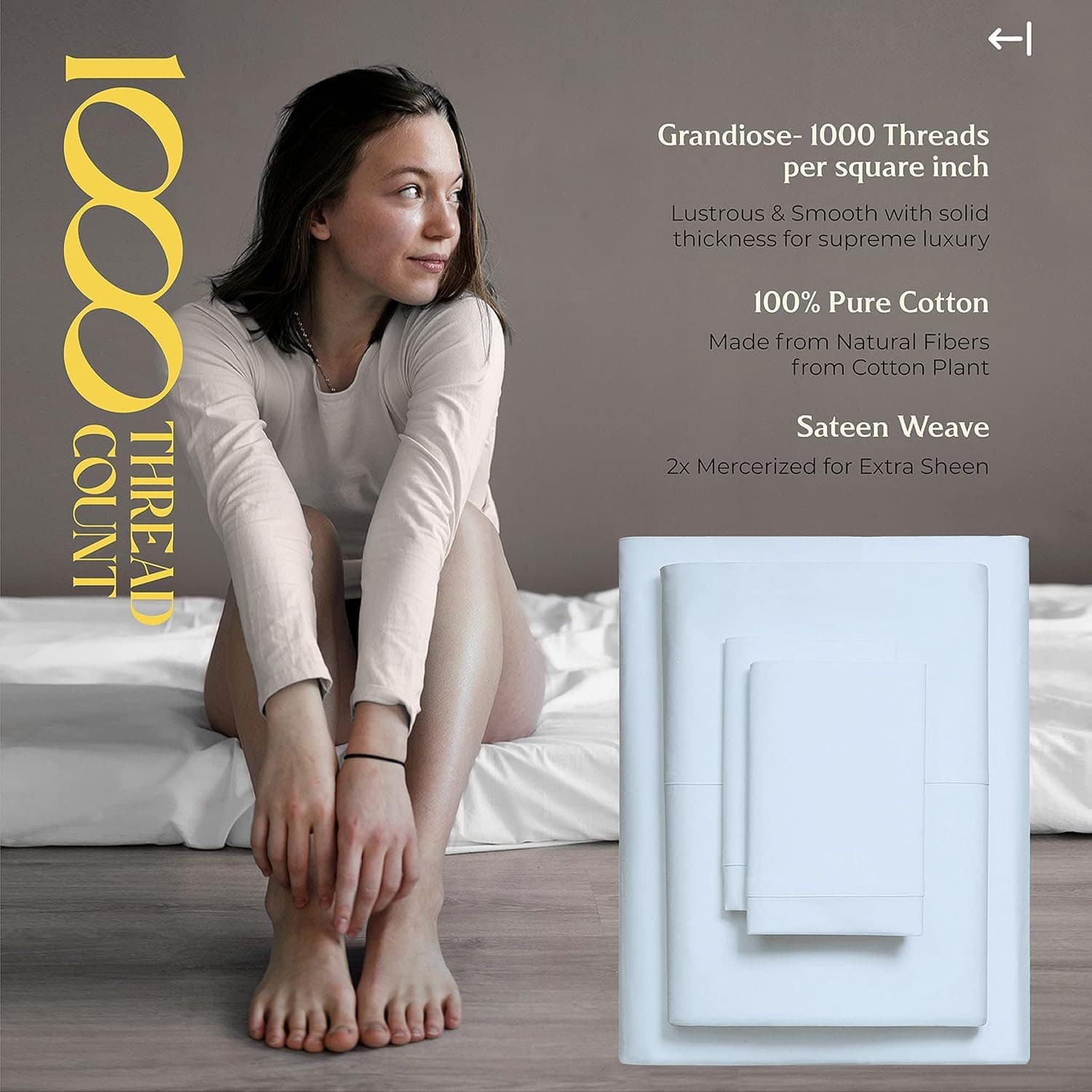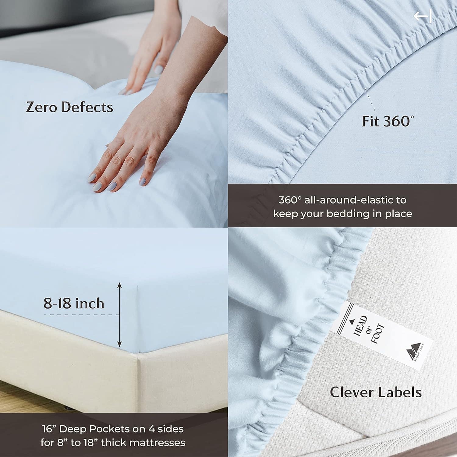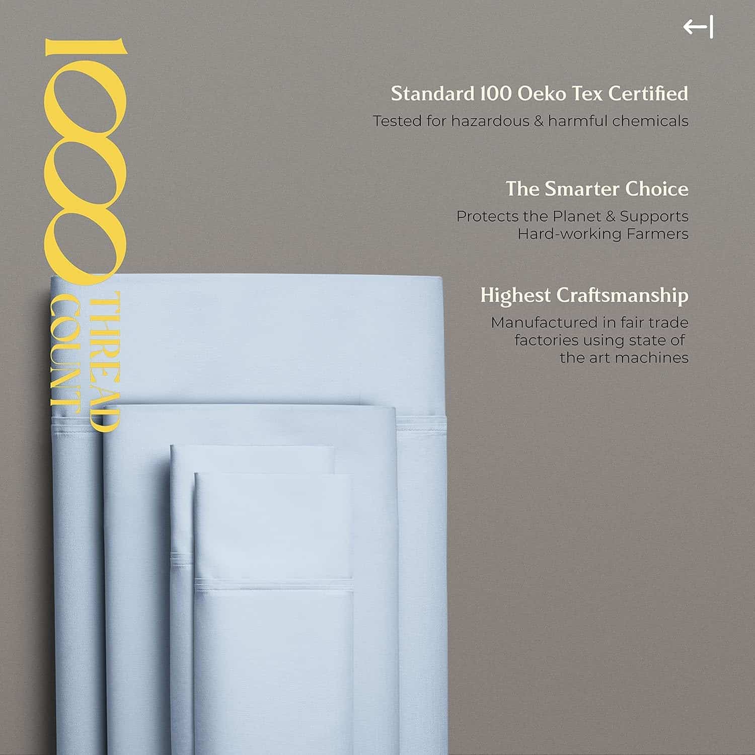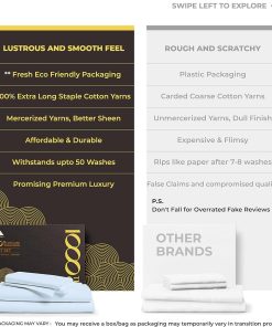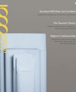 ¿QUÉ HAY EN LA BOLSA 1 Sábana plana – 90 W x 102 L | 1 Sábana inferior – 54 W x 75 L + 16 bolsillo profundo | 2 Fundas de almohada tamaño queen – 21 W x 32 L QUE HACE QUE NUESTRAS SÁBANAS SEAN LAS MÁS SUAVES Y LUXURIOSAS DEL MERCADO HOY : Cuanto más larga sea la fibra, más suave será la tela. Utilizamos fibras de algodón de fibra extra larga para hacer los juegos de sábanas más suaves y acogedores. 1000 hilos están tejidos en cada pulgada cuadrada de tela para mejorar la resistencia, resistencia al apelmazamiento y encogimiento, y suavidad de la tela. Las sábanas luego se mercerizan para un toque más suave, un lustre aumentado y para hacer que los colores aparezcan más brillantes que las sábanas de algodón regular. ¿SON COMPARABLES A LA ROPA DE CAMA DE HOTEL DE CINCO ESTRELLAS : Sí. El tejido de satén proporciona un tacto suave y sedoso que se siente similar a la textura de las sábanas de cama de hotel de cinco estrellas. Estas sábanas de algodón son suaves, frescas y transpirables, como las que descansas en un hotel de cinco estrellas. ¿SON ESTAS SÁBANAS MÁS DURADERAS QUE OTRAS SÁBANAS DE ALGODÓN : Se puede decir que sí. Las sábanas hechas de algodón de fibra extra larga tienden a deshilacharse menos, apelmazarse menos, arrugarse menos para durar más que otras sábanas de algodón, sábanas de microfibra y sábanas de poliéster. ¿CÓMO HACEMOS SÁBANAS QUE SE ADAPTAN PERFECTAMENTE A TU CAMA : Cada sábana inferior tiene elástico de pleno derecho y bolsillos profundos para adaptarse a todos los colchones de hasta 18 pulgadas de profundidad. Las etiquetas inteligentes indican el lado de longitud y anchura para que puedas hacer la cama fácilmente. Las fundas de almohada tienen cierres de sobre para que las almohadas se queden dentro de la cubierta. Ves, hicimos todo el trabajo aquí para que no tengas que hacerlo. ¿POR QUÉ MÁS DE 1 MILLÓN DE CLIENTES CONFIAN EN NOSOTROS : Cada paso de nuestro proceso es sostenible y ético para todos. Eso significa que nuestro juego de sábanas de algodón se cultiva de forma natural. Estamos certificados por STANDARD 100 de OEKO-TEX, lo que significa que nuestra ropa de cama está libre de sustancias dañinas. Por último, todos nuestros envases son libres de plástico, lo que nos convierte en una opción amigable y sostenible
