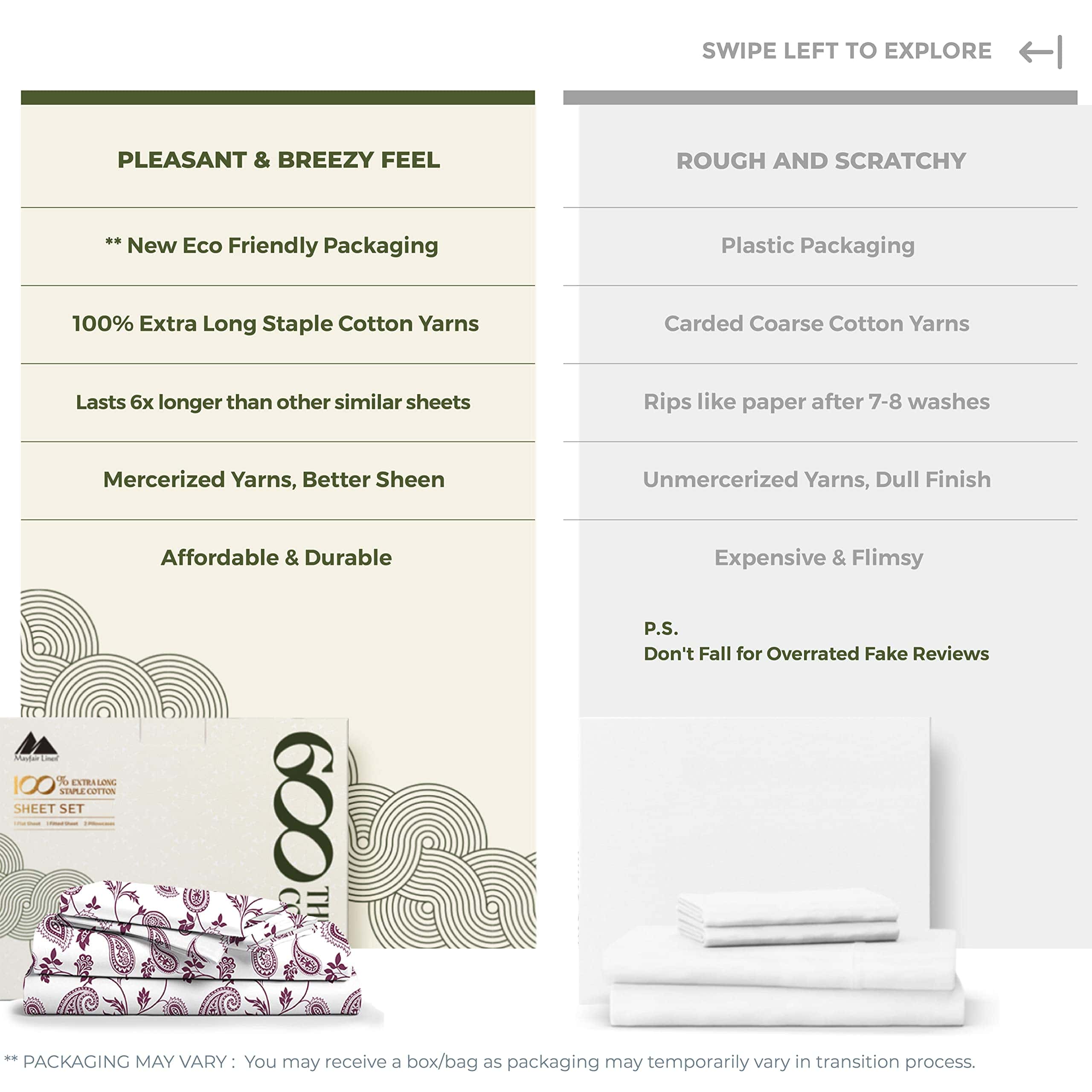 Exceptional durability and softness: Our Mayfair Linen 600 thread count sheets set new benchmarks in comfort. By using extra-long staple cotton, which is known for its long fibers, our sheets offer unparalleled durability and softness. The 600 densely packed threads per square inch ensure a balance of smoothness and strength. Mercerized for enhanced luster and vivid colors, these sheets are not just soft they are also resilient and designed to feel luxurious in every season.