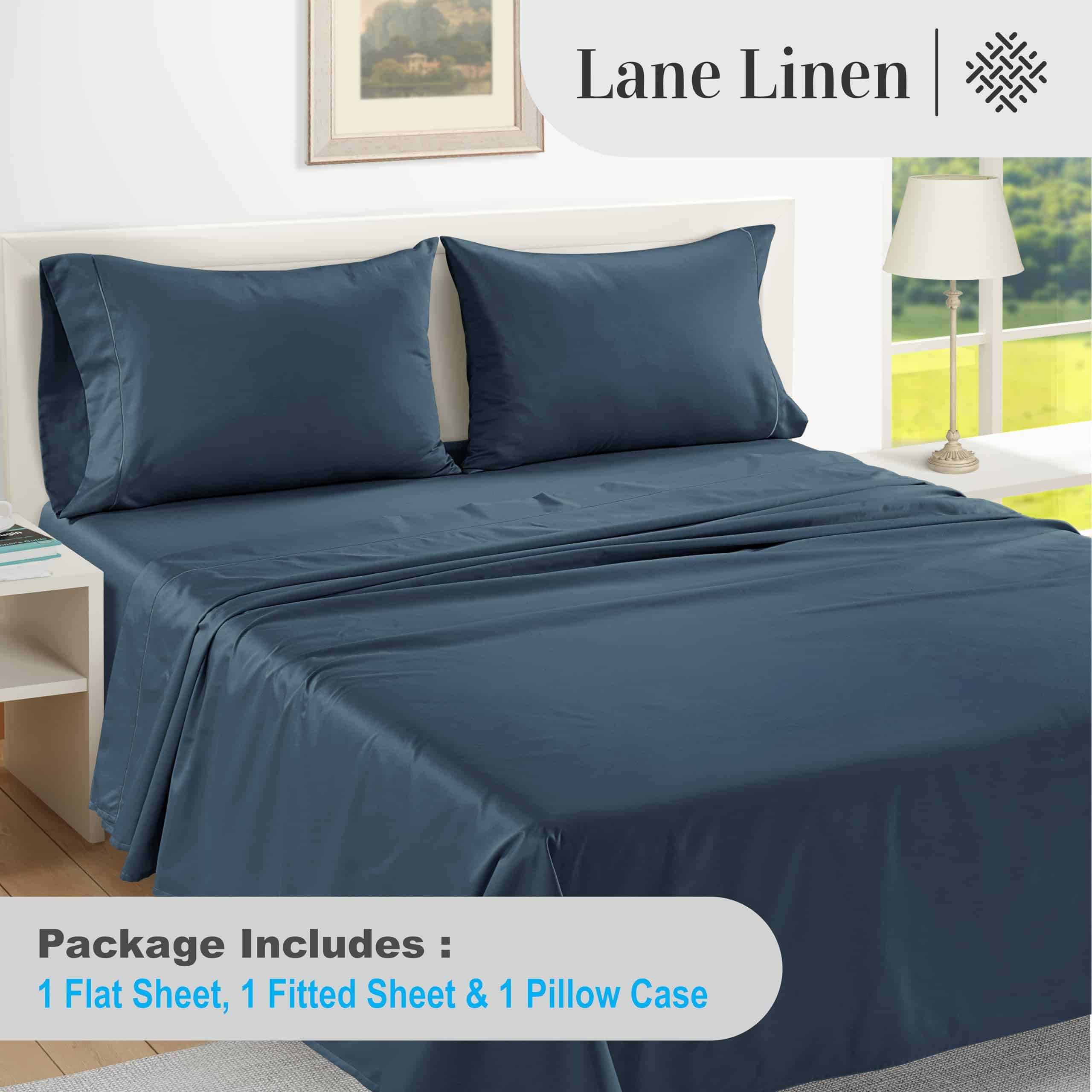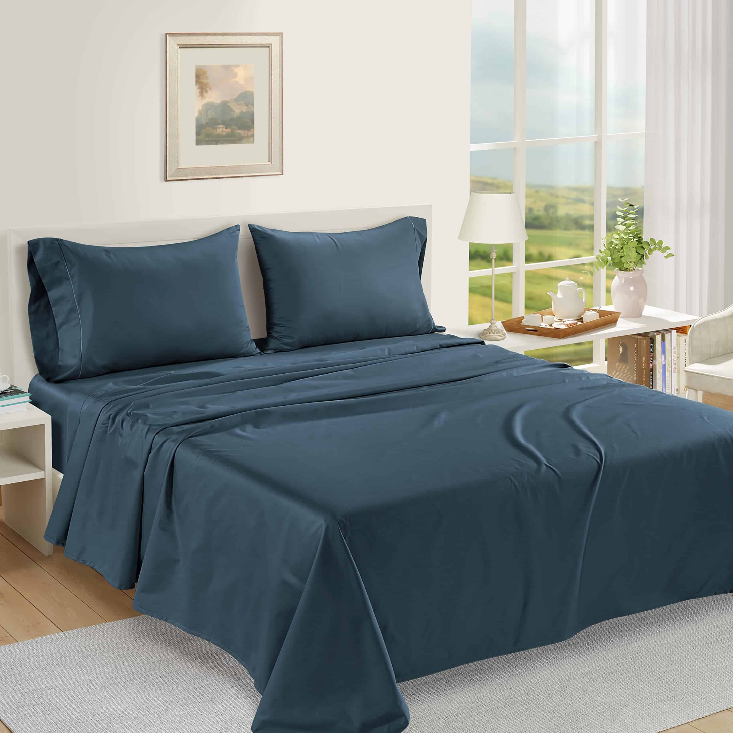Juego de Sábanas de 100% Algodón Egipcio LANE -Azul Marino O