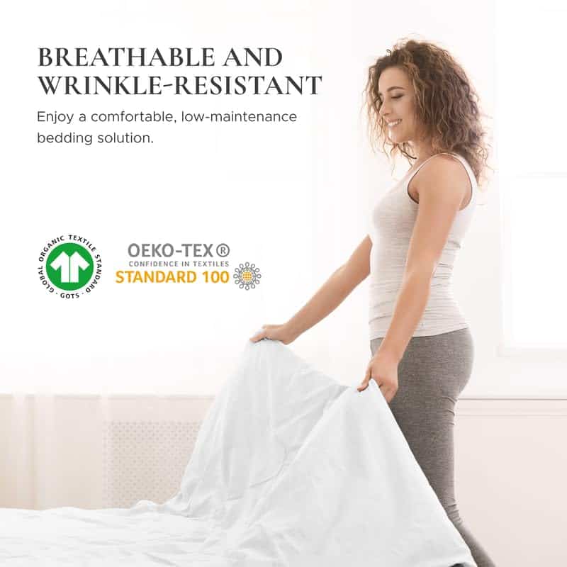 2. TRANSPIRABLE Y RESISTENTE A LAS ARRUGAS: Este juego de sábanas es transpirable y se vuelve aún más suave con cada lavado, mientras que las arrugas mínimas garantizan un aspecto impecable. Disfruta de una solución de ropa de cama cómoda y de bajo mantenimiento.