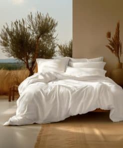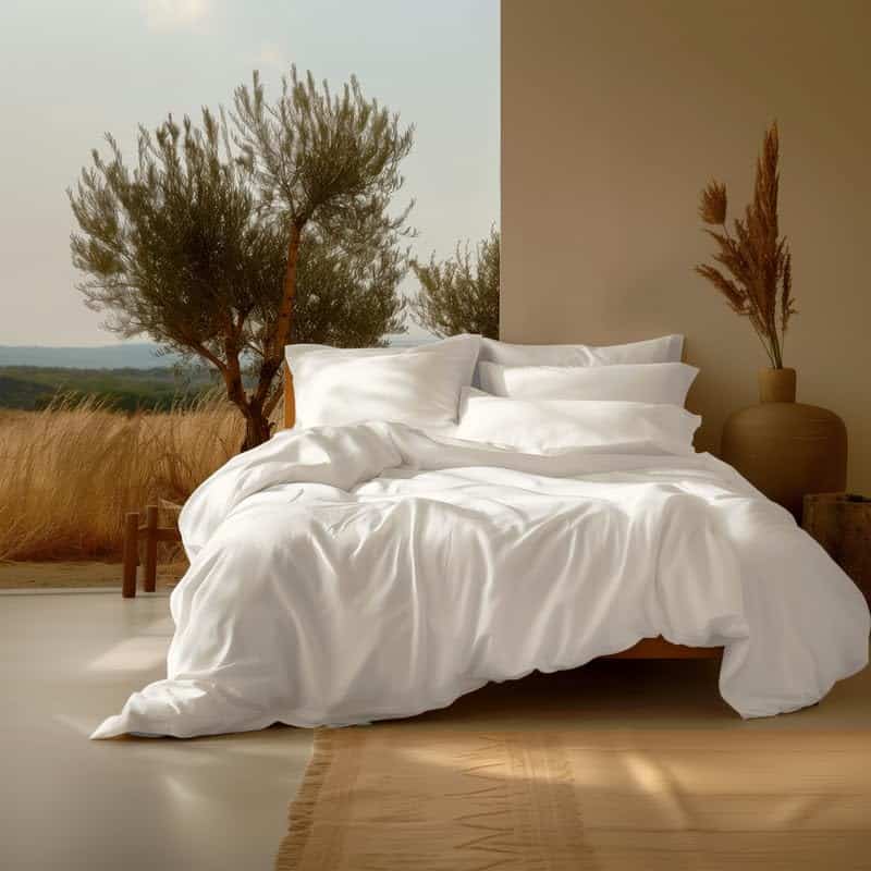 4. PRODUCCIÓN ECO-CONSCIENTE: Nuestras sábanas se fabrican éticamente utilizando energía solar y un 91% menos de agua en una fábrica certificada por Fair Trade en India. Están libres de emisiones nocivas y vienen en una bolsa de tela orgánica, biodegradable y reutilizable, lo que las convierte en una opción sostenible.