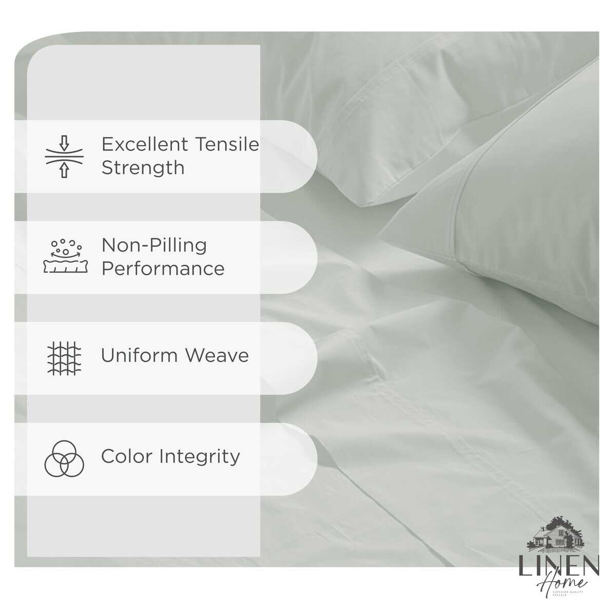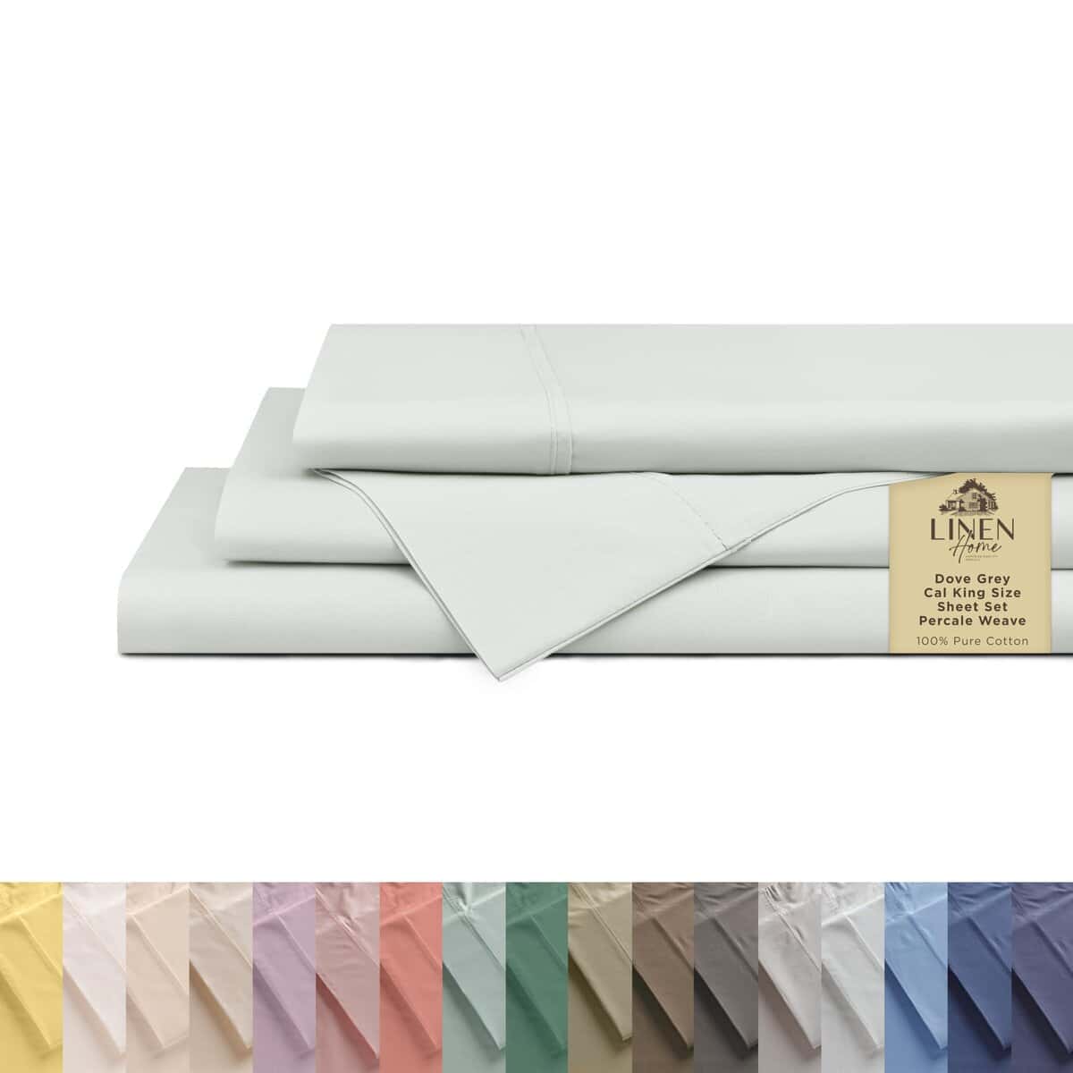Juego de sábanas 100% algodón. La sábana bajera se ajusta a colchones de hasta 16 pulgadas de grosor. El juego de sábanas tamaño California King incluye 1 sábana plana (108 «X106″) + 1 sábana ajustable (72» X84 «+ 15″) + 2 fundas de almohada (20″ X40»). La sábana plana y las fundas de almohada tienen un dobladillo en Z para brindarte una sensación premium y exclusiva. Lavar a máquina en ciclo suave y secar a baja temperatura. Sábanas frescas y resistentes. Hecho en una fábrica Made in Green para garantizar que el producto se fabrique en un molino aprobado donde las sábanas están libres de mezclas dañinas. La calidad es superior y duradera. Satisfacción garantizada. La calidad de Linen Home se enfoca en la satisfacción del cliente. Orgullosos de nuestra política de devolución sin preguntas 30 días. Ideal para regalar en todas las estaciones: primavera, verano, e incluso para habitaciones nuevas, habitaciones de niños, habitaciones de invitados, habitaciones de dormitorios.