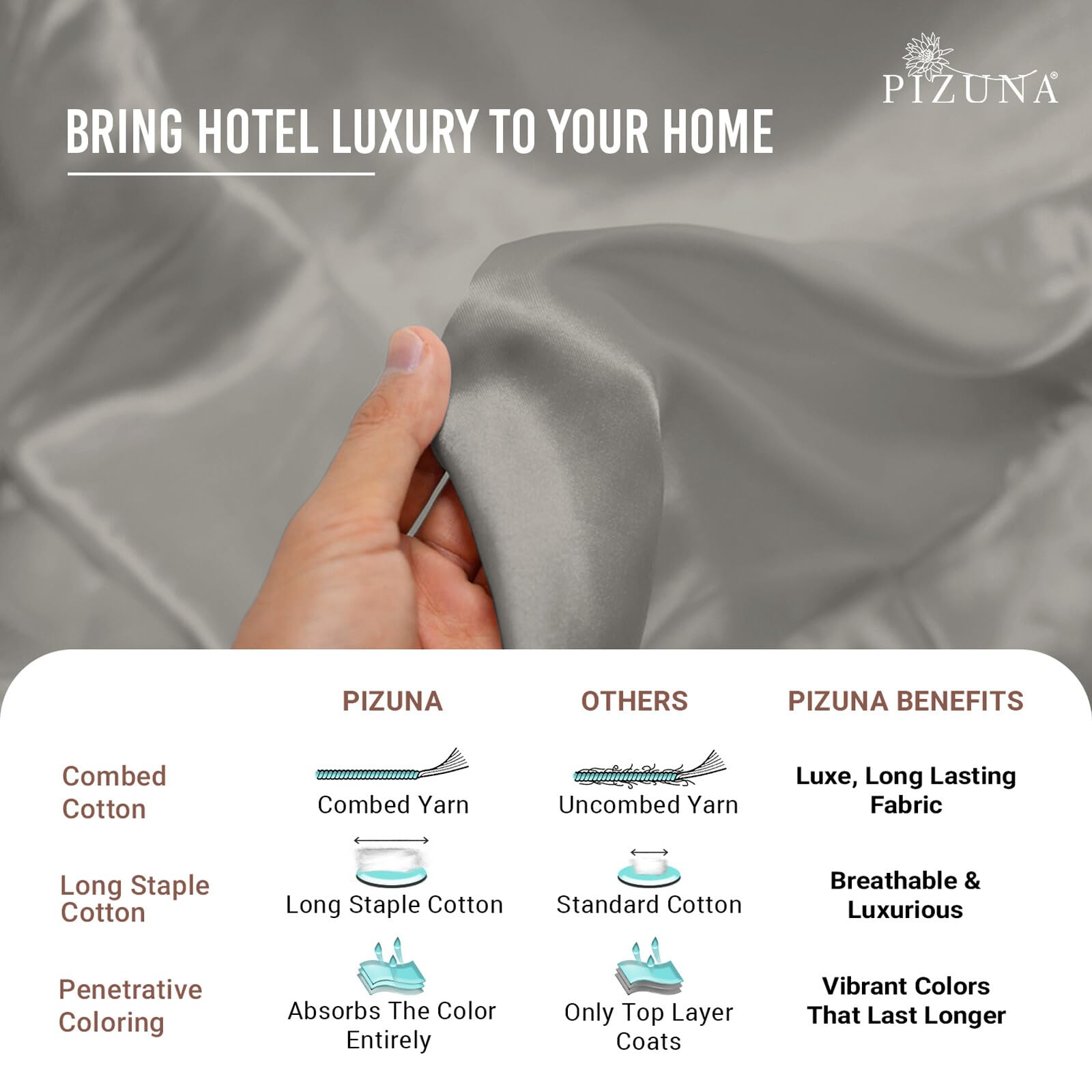 7. Pizuna se preocupa: Miles de familias felices y medios de comunicación han elogiado nuestro lujoso juego de sábanas de algodón. Sin embargo, si no estás satisfecho con el producto, puedes devolverlo dentro de los 30 días según la política, más allá de eso, nuestro equipo de atención al cliente estará allí para asistirte también.