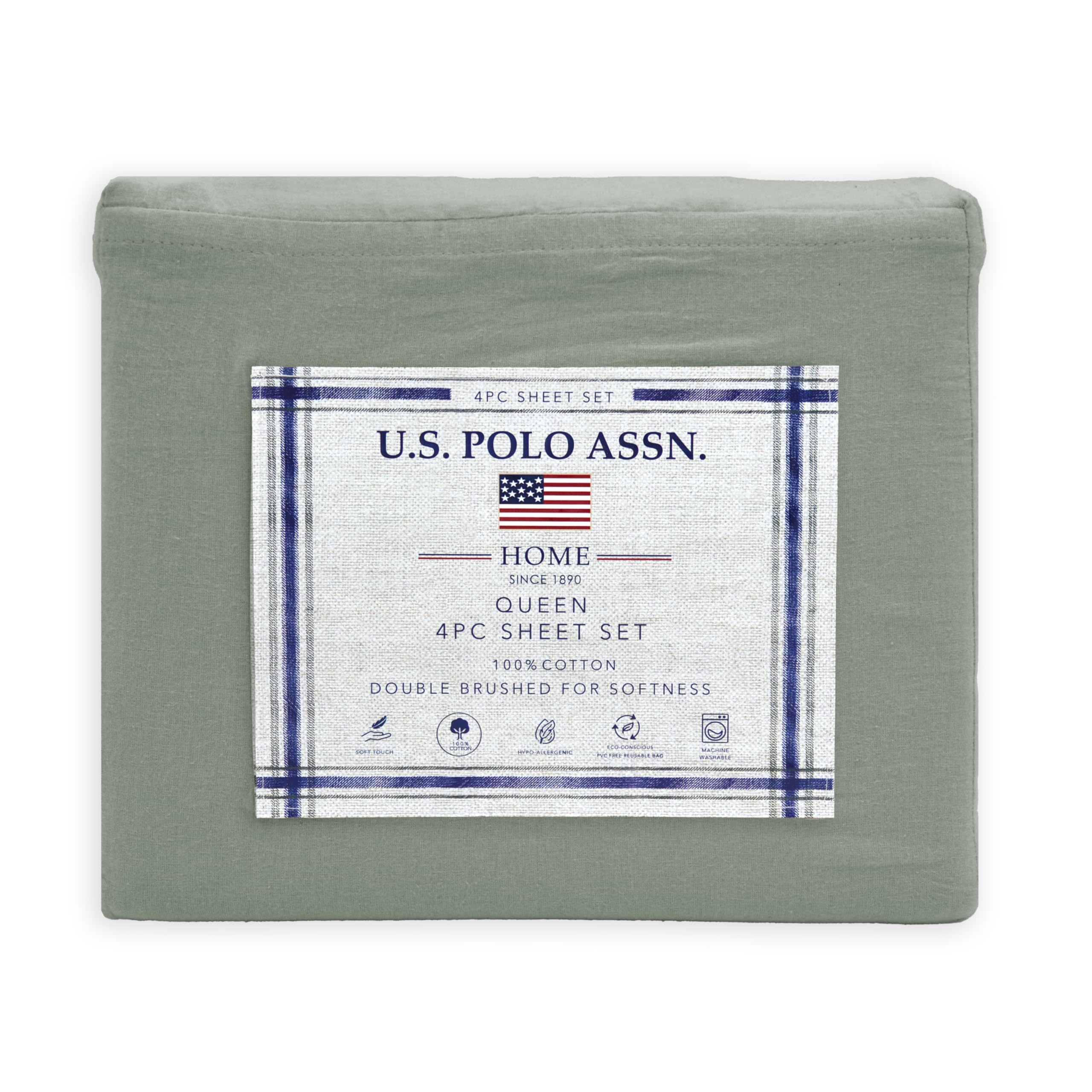 Juego de sábanas de 100% algodón U.S. Polo Assn. de 4