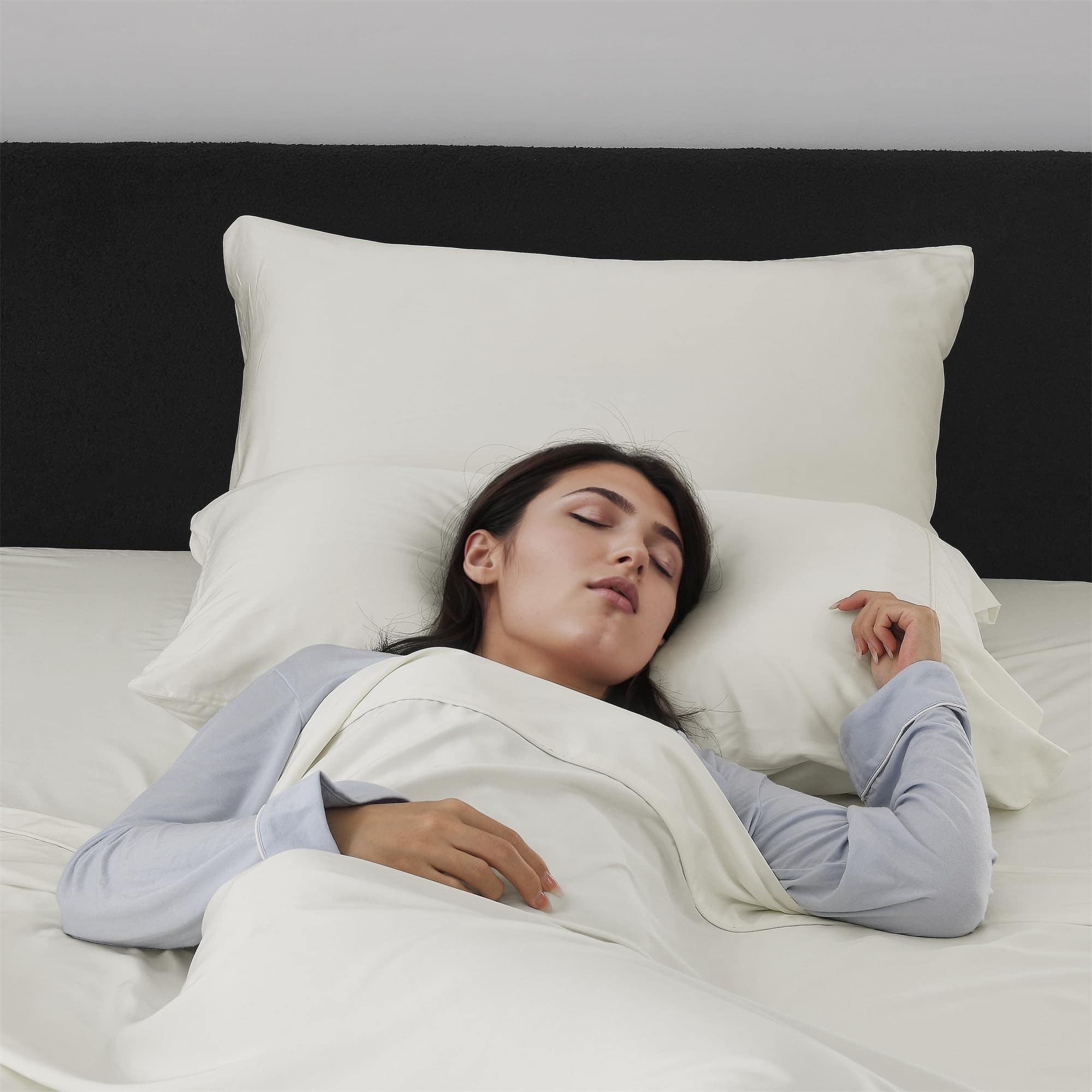5. ULTRA-SUAVES Y LUXURIOSAMENTE SUAVES: Consiéntete con la suavidad de las sábanas de bambú viscosa al 100% que agregan un toque de elegancia y lujo a tu dormitorio. Perfectas para mejorar tu experiencia de sueño con un confort inigualable.