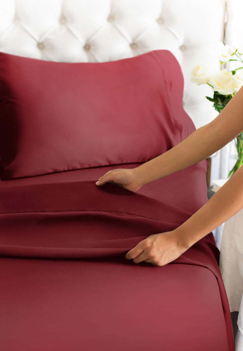 Juego de sábanas de 3 piezas de tamaño TwinXL con bolsillos extra profundos de 400 hilos 100% algodón en color burdeos. Las sábanas CGK Linens son la elección perfecta para aquellos que buscan sábanas de lujo para hotel que sean suaves, sin arrugas y cómodas. Nuestras sábanas tienen bolsillos muy grandes y extra profundos que se adaptan a una variedad de colchones, incluidos los colchones con toppers de espuma viscoelástica, protectores de colchón y pillow tops. Diseñadas con un elástico stretch alrededor de la sábana bajera extra profunda, puede estar seguro de que estas sábanas extragrandes se mantendrán ajustadas con un ajuste seguro. Las sábanas de algodón CGK Linens certificadas de 400 hilos y 100% algodón satén están tejidas con los mejores hilos de algodón de fibra larga para proporcionar la verdadera sensación de algodón que la gente ha disfrutado durante años. Esto asegura que nuestras sábanas sean suaves al tacto, transpirables y duraderas. Fabricadas en la India con 100% Algodón Natural, nuestras sábanas están libres de fibras sintéticas y se suavizan con cada lavado, manteniéndose frescas y proporcionando un entorno de sueño lujoso y saludable durante años. Las sábanas de algodón de satén CGK Linens tienen una sensación suave como la seda y un peso cómodo que abraza tu cuerpo. Son frescas, cómodas y muy suaves, lo que las convierte en una opción popular para aquellos que buscan sábanas que ayuden a mantenerse frescos mientras duermen. Si eres una persona de sueño caliente, nuestras sábanas de algodón 100% naturales serán ideales para ti. En CGK Linens, la satisfacción del cliente es nuestra prioridad número uno. Estamos aquí para asegurarnos de que esté feliz con su compra y siempre estamos dispuestos a ayudar con cualquier pregunta o inquietud que pueda tener. ¡No dude en contactarnos y le responderemos rápidamente!