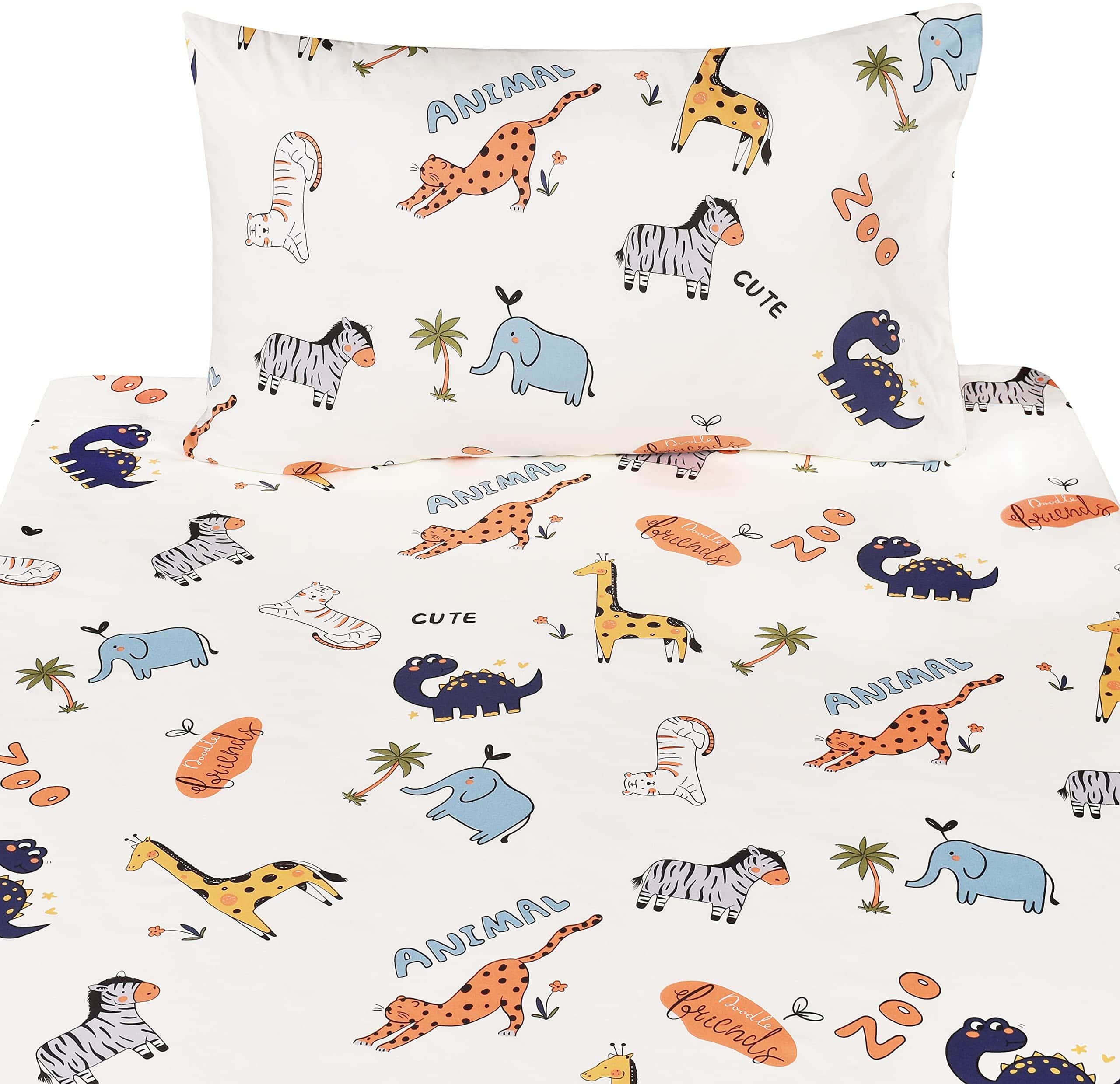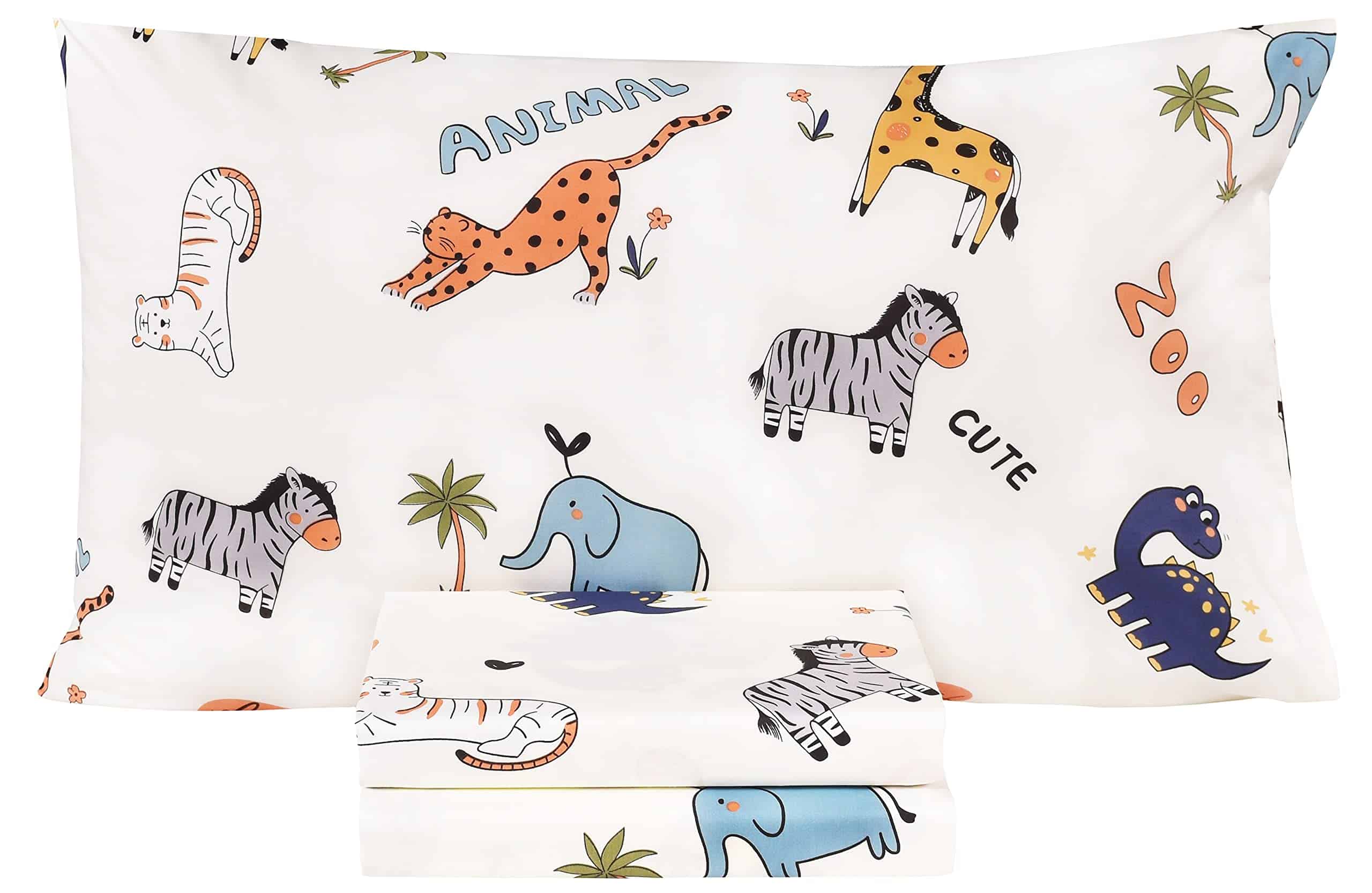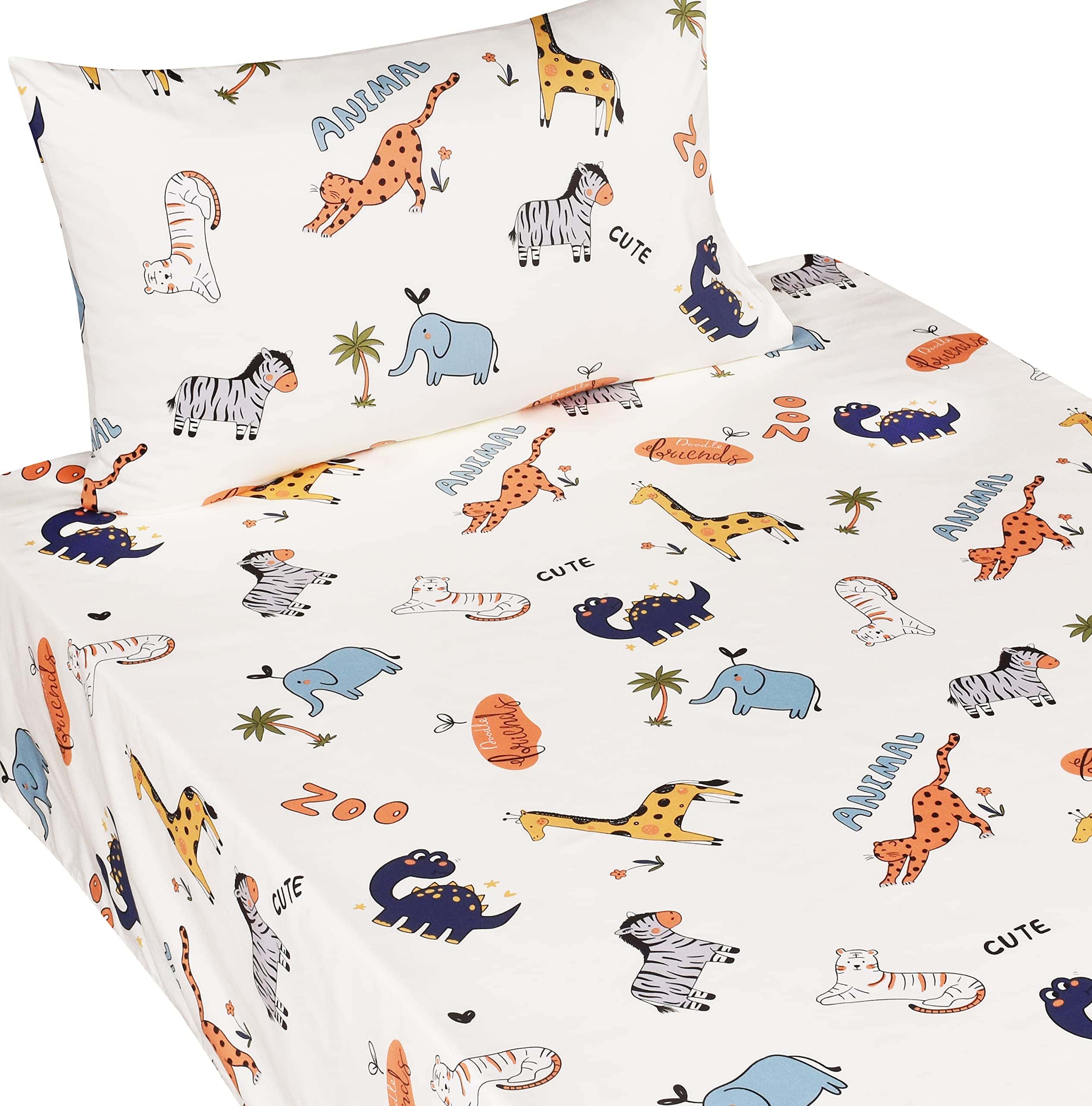 Color y Diseño Lindos y hermosos diseños de dibujos animados son muy queridos por niños y niñas. Suaves, acogedores, transpirables y cómodos para usar en cualquier temporada. Tamaño individual: sábana encimera: 60″ x 90″, sábana bajera: 39″ x 75″ +10″, funda de almohada: 20″ x 30″. Lavar y Cuidar LAVAR A MÁQUINA EN FRÍO, SECAR COLGADO o secar a baja temperatura, no limpiar en seco.