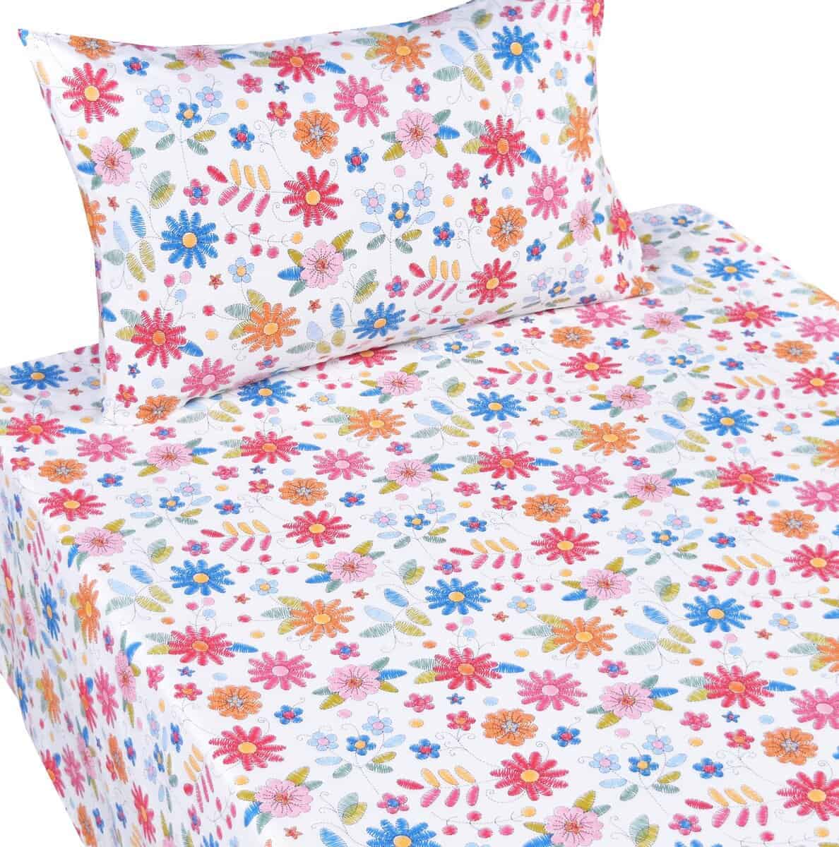 Individual: sábana plana: 60″ X 90″, sábana ajustable: 39″ X 75″ +10″, funda de almohada: 20″ X 30″