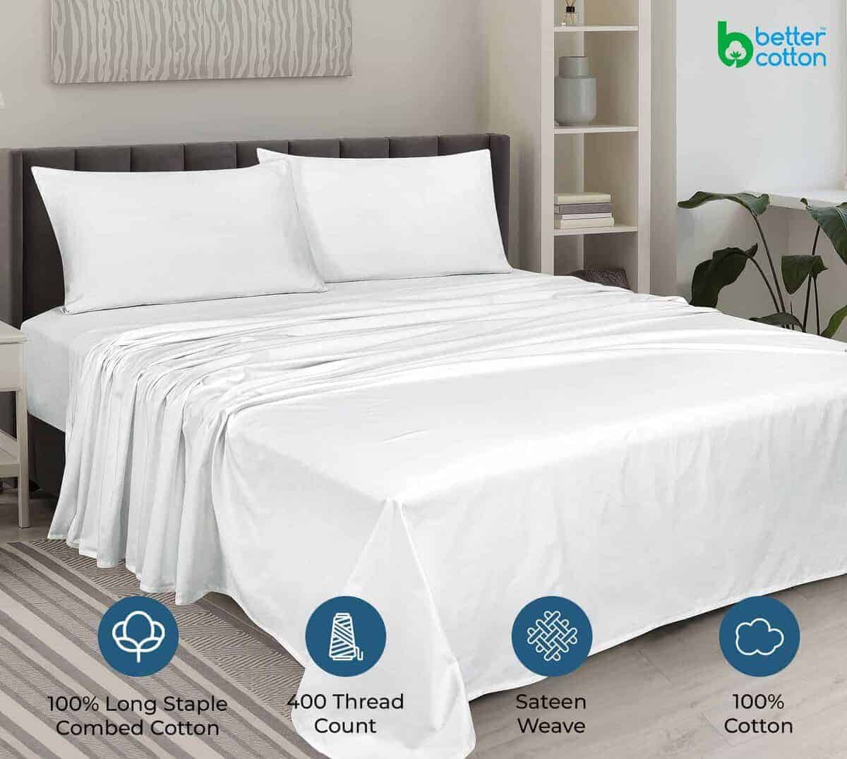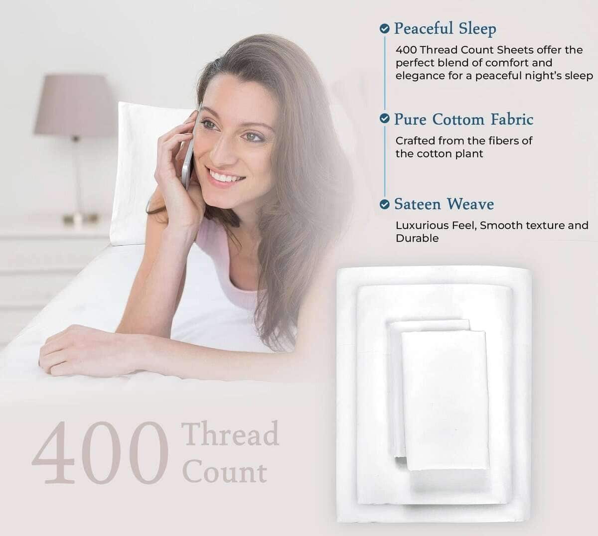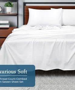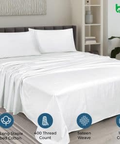 Los juegos de sábanas de 400 hilos de Royale Linens están fabricados con algodón americano de la mejor calidad y con un lujoso tejido de satén que los hace transpirables, cómodos y acogedores. Experimenta la lujuria y la comodidad como nunca antes con nuestro tejido de satén premium. El juego de sábanas de 400 hilos de 3 piezas para tamaño twin incluye una sábana plana de 66×96 pulgadas, una sábana ajustable de 39×75 pulgadas con 16 pulgadas de caída y una funda de almohada de 20×30 pulgadas con 4 pulgadas de dobladillo y cierre de sobre. Las sábanas de algodón de 400 hilos en tamaño twin de Royale Linens son transpirables, frescas y súper suaves y sedosas. El tejido se procesa para hacerlo resistente a la contracción y a la decoloración. Son perfectas para el dormitorio, habitación de invitados, habitaciones de niños, hoteles, etc. Son una excelente idea de regalo para hombres y mujeres en ocasiones especiales como el Día de San Valentín, Día de la Madre, Día del Padre y Navidad. Los juegos de sábanas de 400 hilos de satén 100% algodón de Royale Linens están certificados Standard 100 por Oeko-Tex, lo que garantiza que se han probado para sustancias dañinas y se han producido de una manera amigable con el medio ambiente y socialmente responsable. También son sostenibles de acuerdo con las pautas de Oeko-Tex. Las sábanas de algodón de Royale Linens están diseñadas para resistir lavados repetidos. Se recomienda lavar a máquina en frío, solo usar blanqueador sin cloro, secar en secadora o planchar a temperatura normal. Se sugiere lavar antes del primer uso para desbloquear la suavidad que ofrecen estas sábanas de alta calidad.