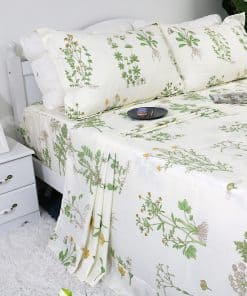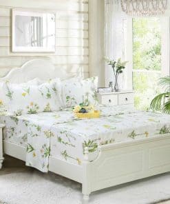Juego de sábanas California King (4 piezas): 1 sábana ajustable 72 x 84 + 17.5 pulgadas (A L H), 1 sábana plana 110 x 102 pulgadas, 2 fundas de almohada (shams) 20 x 36 pulgadas. SIN INSERTO DE EDREDÓN. Diseño de moda Hermoso diseño de patrón de flores y plantas, tecnología de impresión de alta calidad a juego, juegos de cama de lujo, mejorar la sensación artística, mostrar su gusto de vida de alta calidad, la mejor opción para la decoración de su dormitorio. No solo eso, es una gran idea de regalo para bodas, aniversarios, festivales, vacaciones, cumpleaños, etc. Cuidado diario Lavar a mano o a máquina en frío en ciclo suave. Todos los lavavajillas y secadoras comunes se pueden usar, secar en secadora a baja temperatura, no usar lejía ni limpiar en seco. Sugerimos lavar antes del primer uso. Gran servicio FADFAY es una conocida marca textil para el hogar estadounidense. Prometemos 30 días de devolución y servicio al cliente 7×24 horas. Cualquier pregunta, contáctenos cuando esté libre, le proporcionaremos la mejor solución en el menor tiempo posible.
