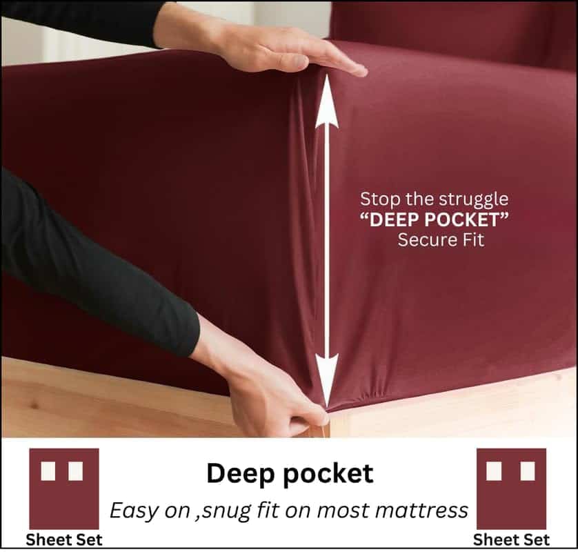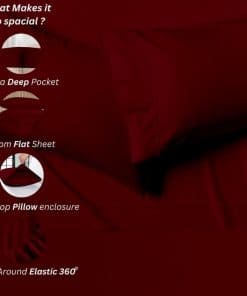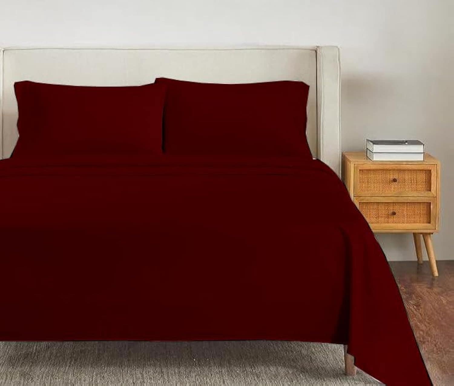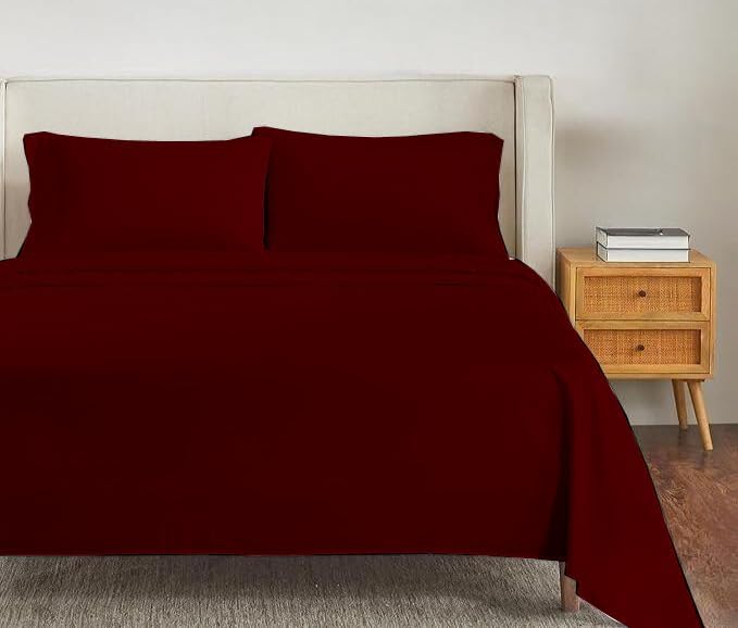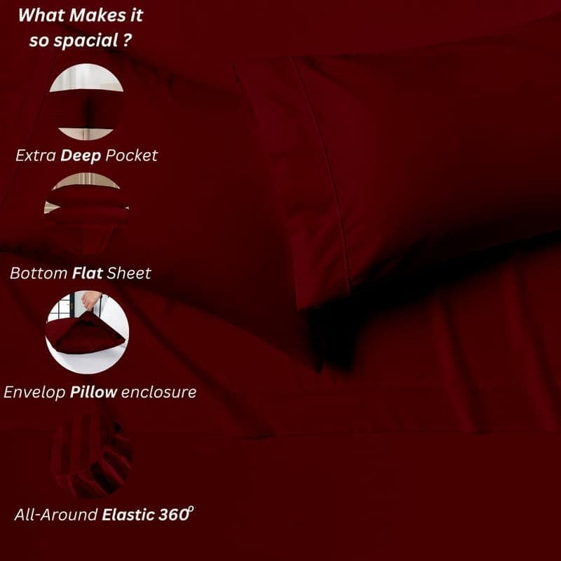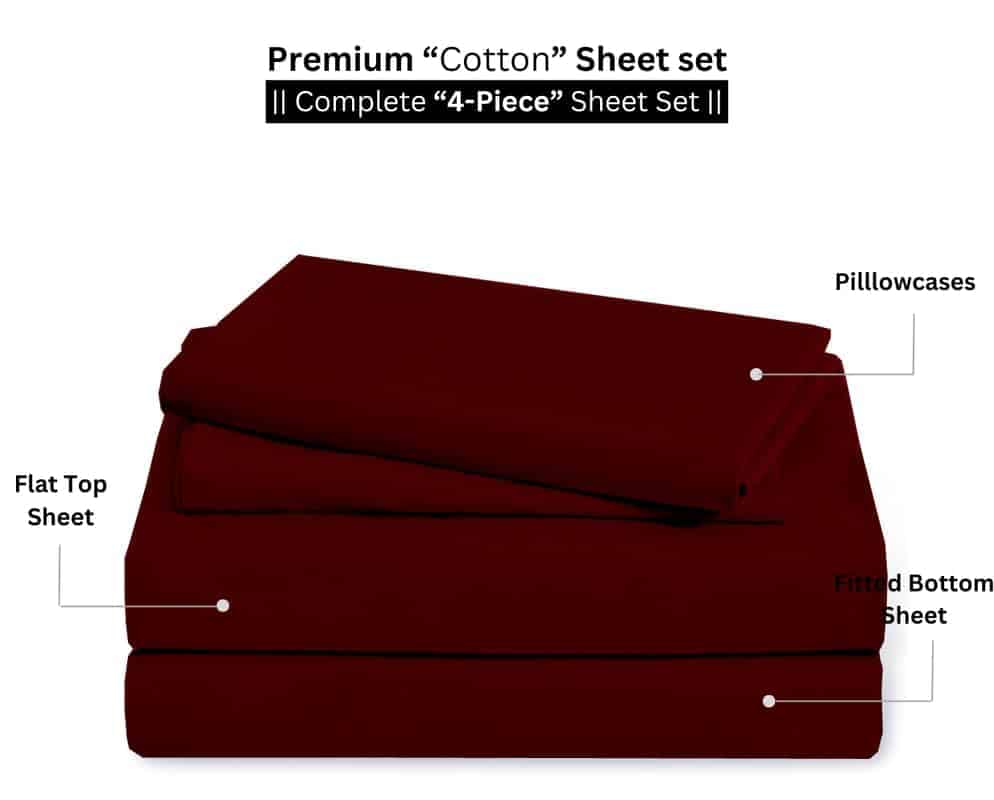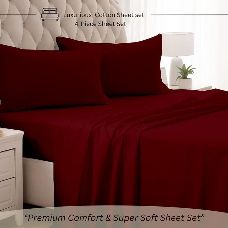 Juego de Sábanas de 4 Piezas de Algodón Premium -Borgoña