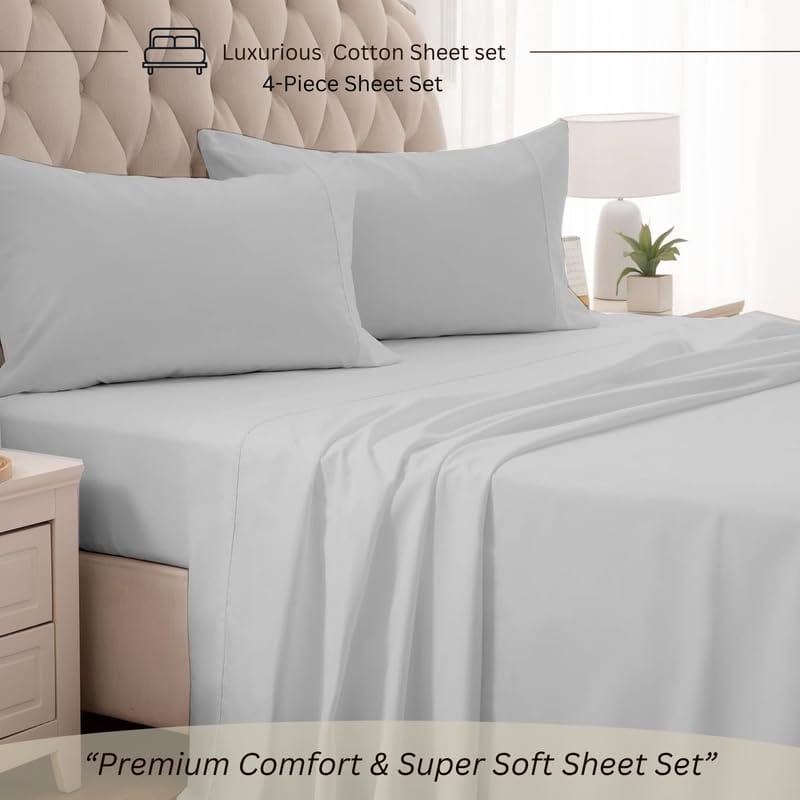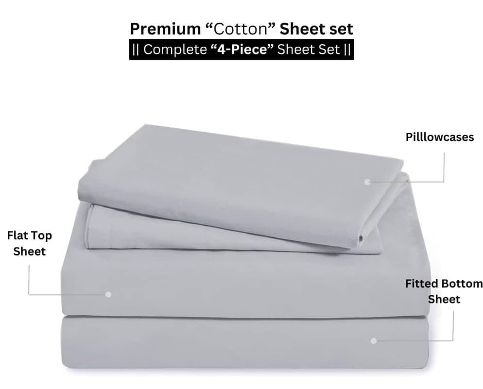 Juego de Sábanas de 4 Piezas de Algodón Premium para Cama