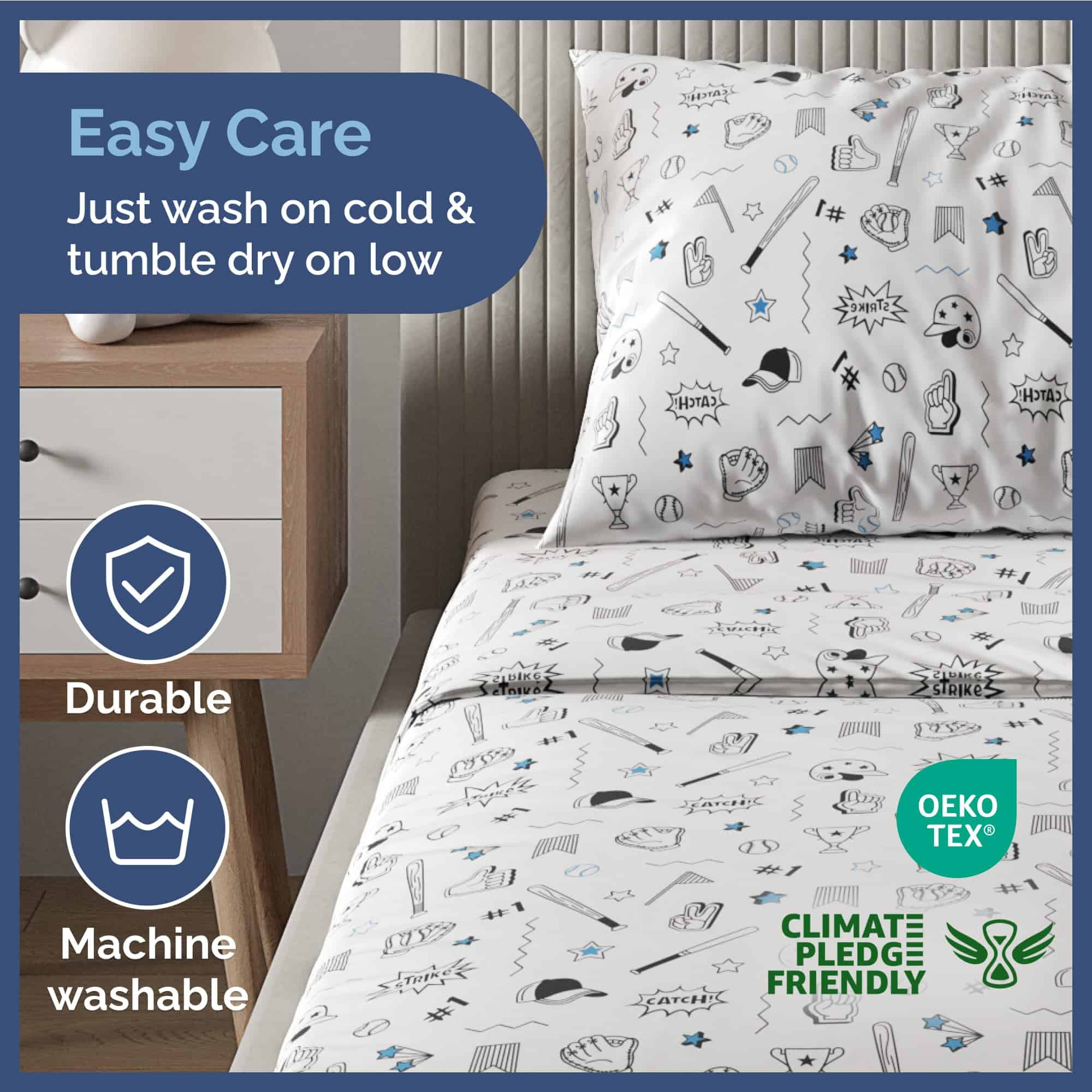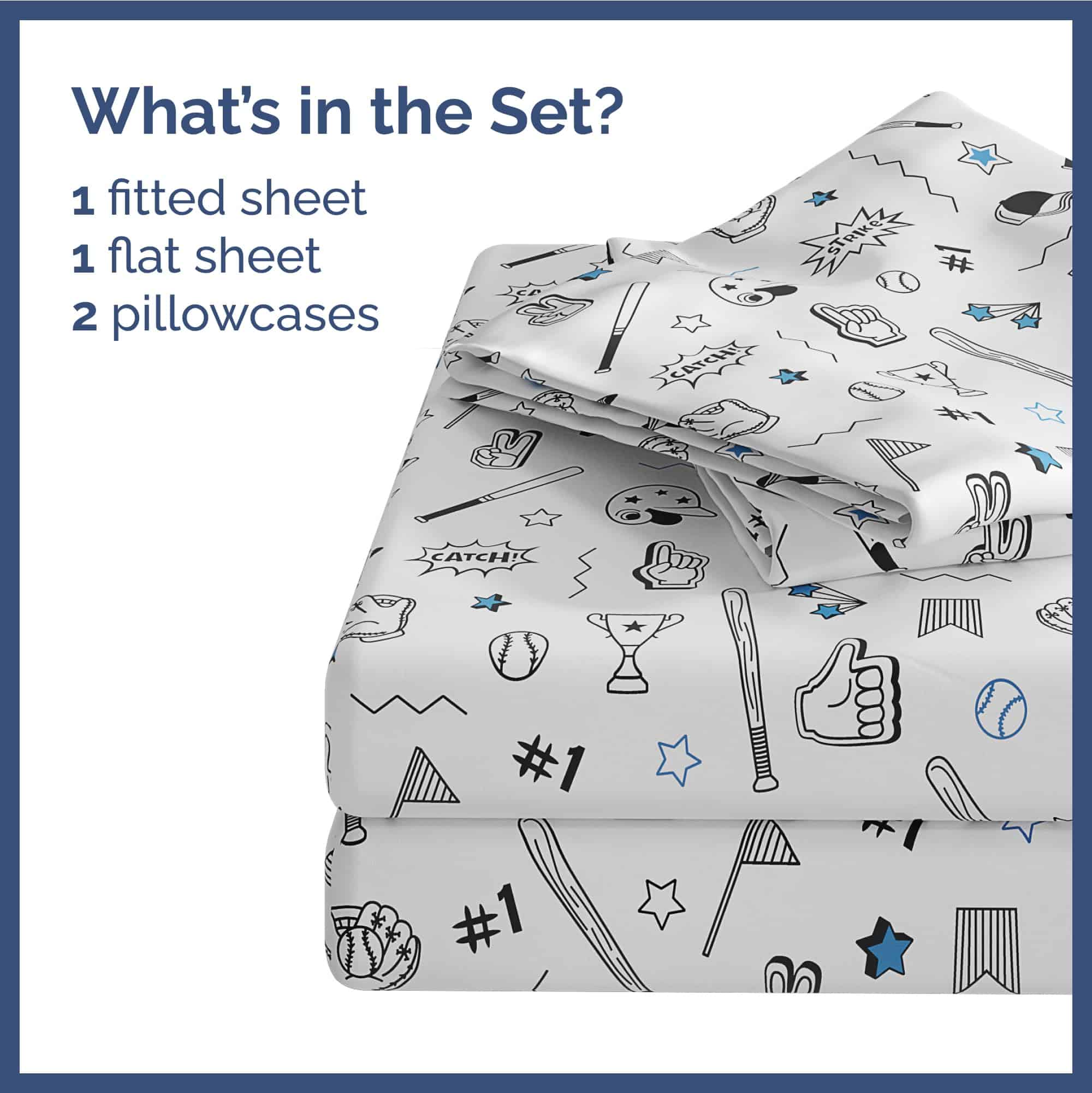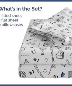Juego de sábanas de 4 piezas Kids Baseball Queen – Niños,