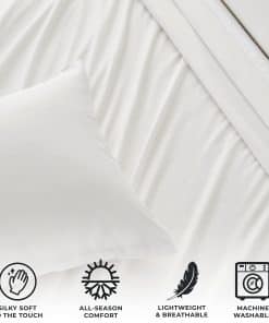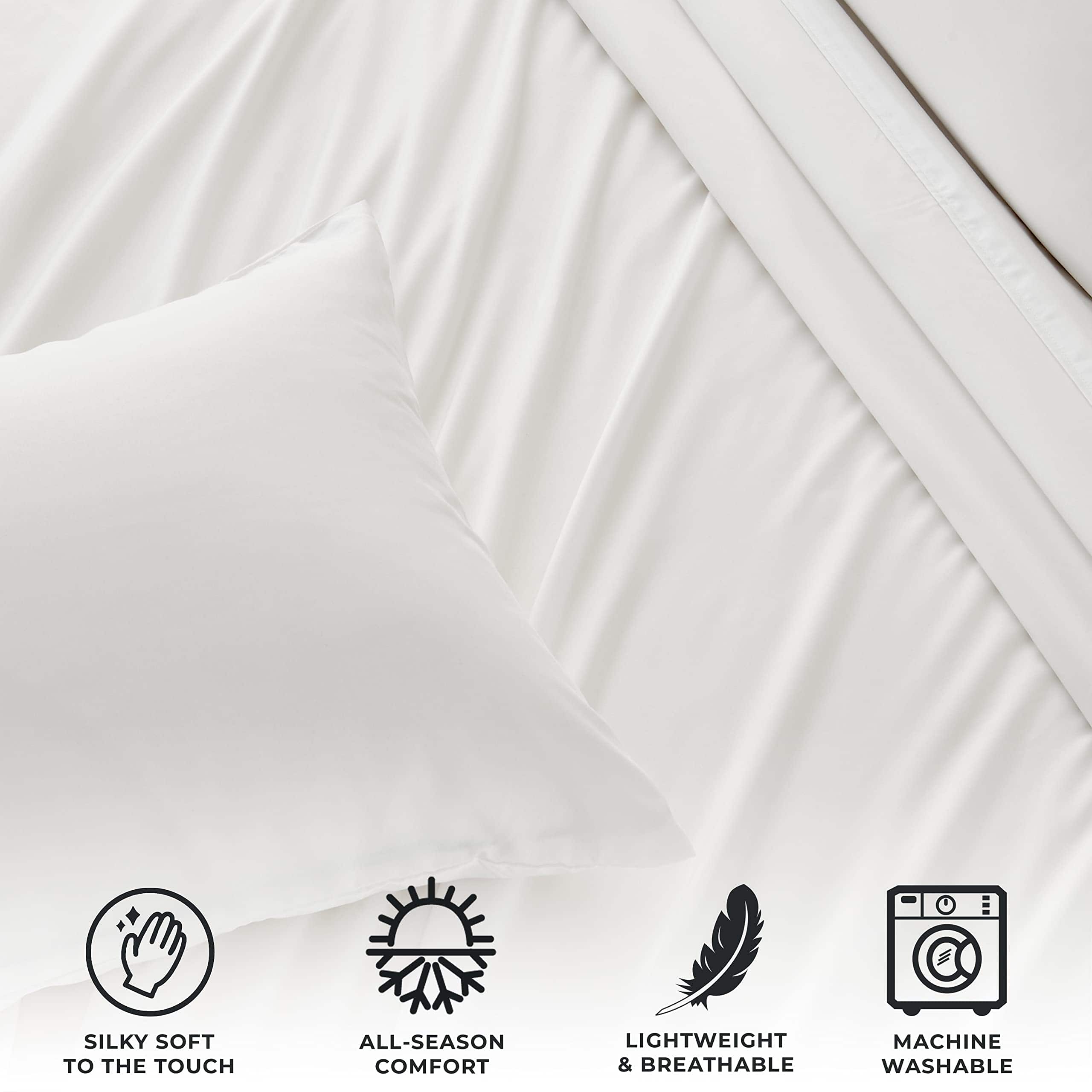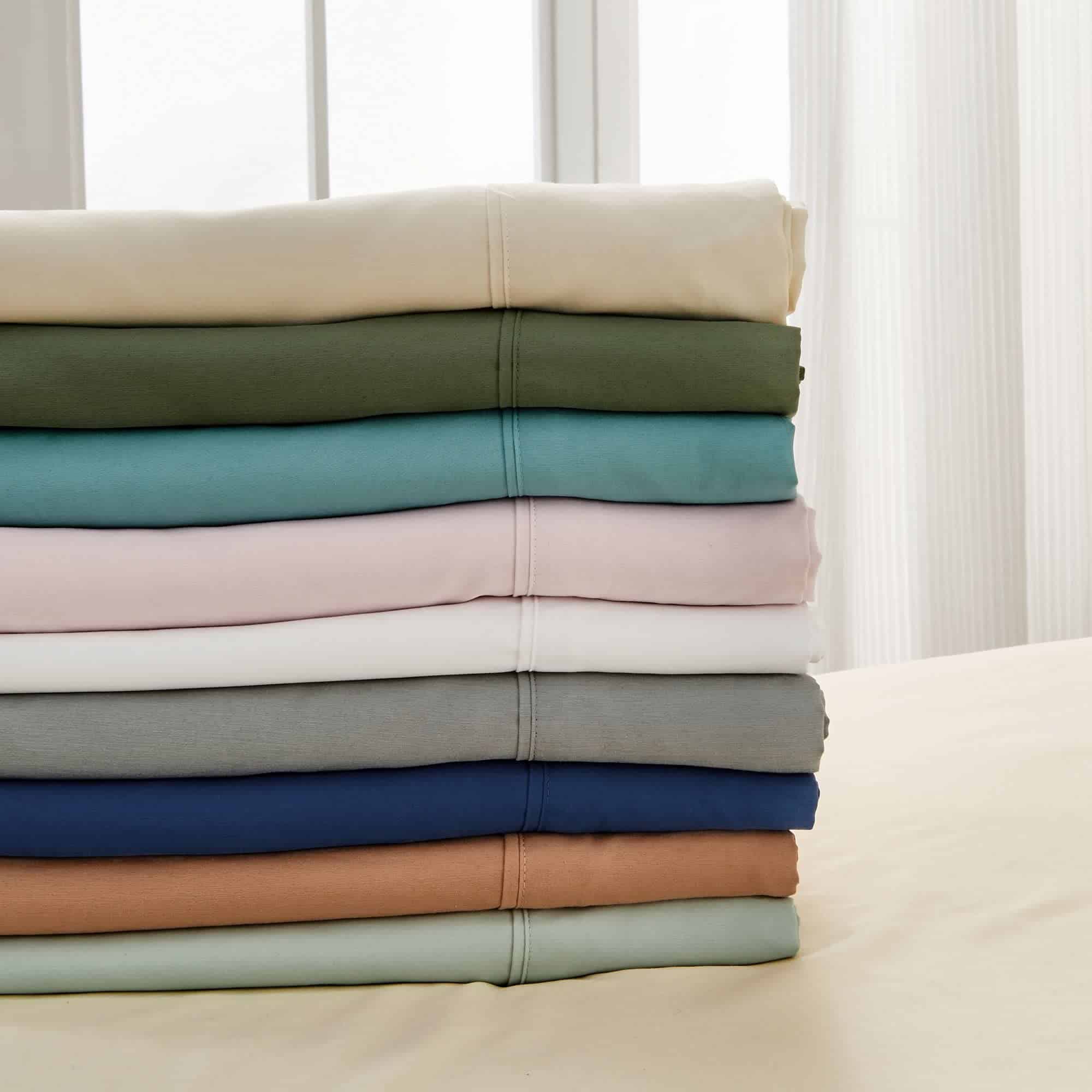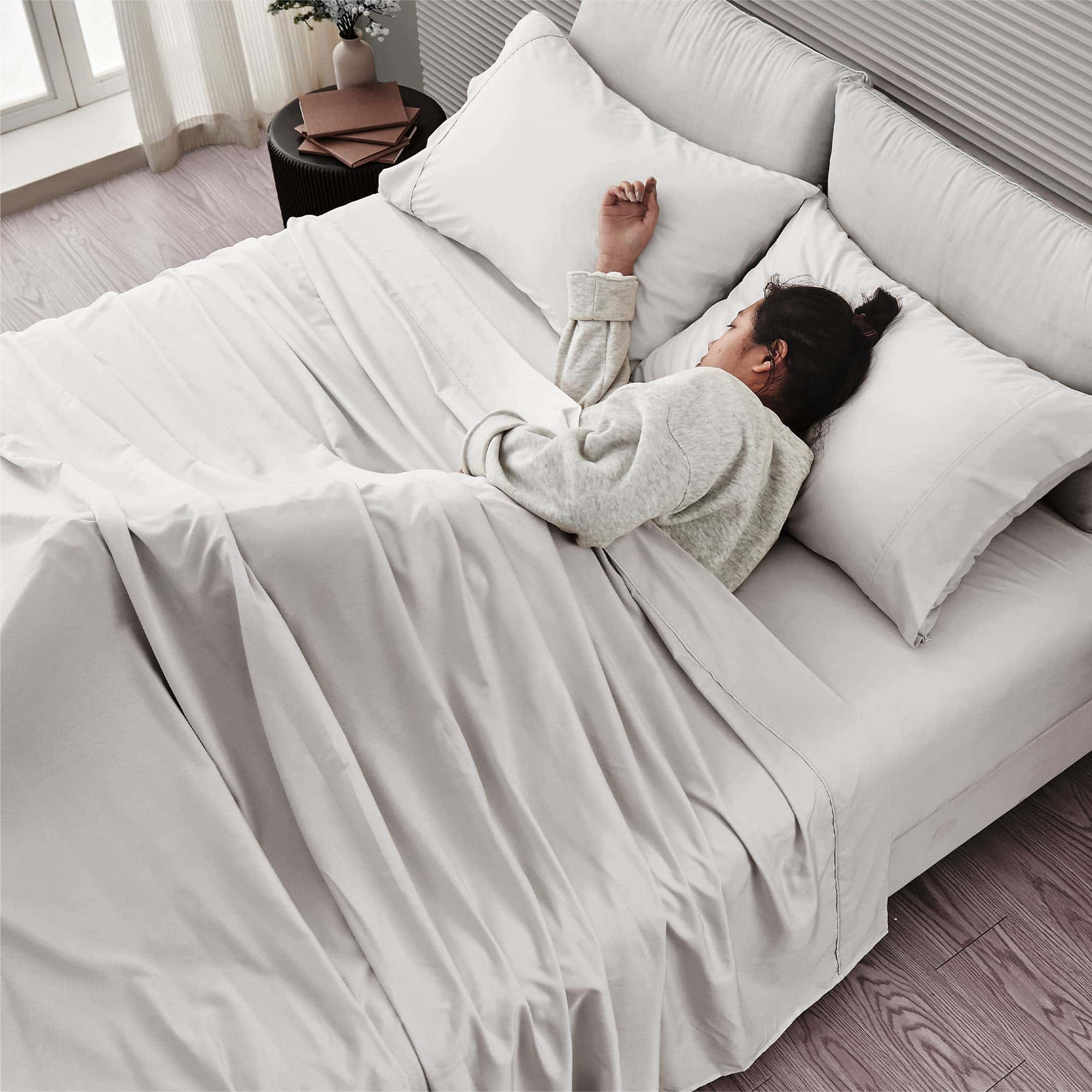 2. Transpirables, refrigerantes, sedosas: Estas sábanas asequibles hechas de rayón derivado de bambú se sienten suaves como la seda contra su piel. Son transpirables, refrigerantes y perfectas para quienes duermen calientes. Estos juegos de sábanas y fundas de almohada son los juegos de ropa de cama perfectos para una decoración de habitación moderna.