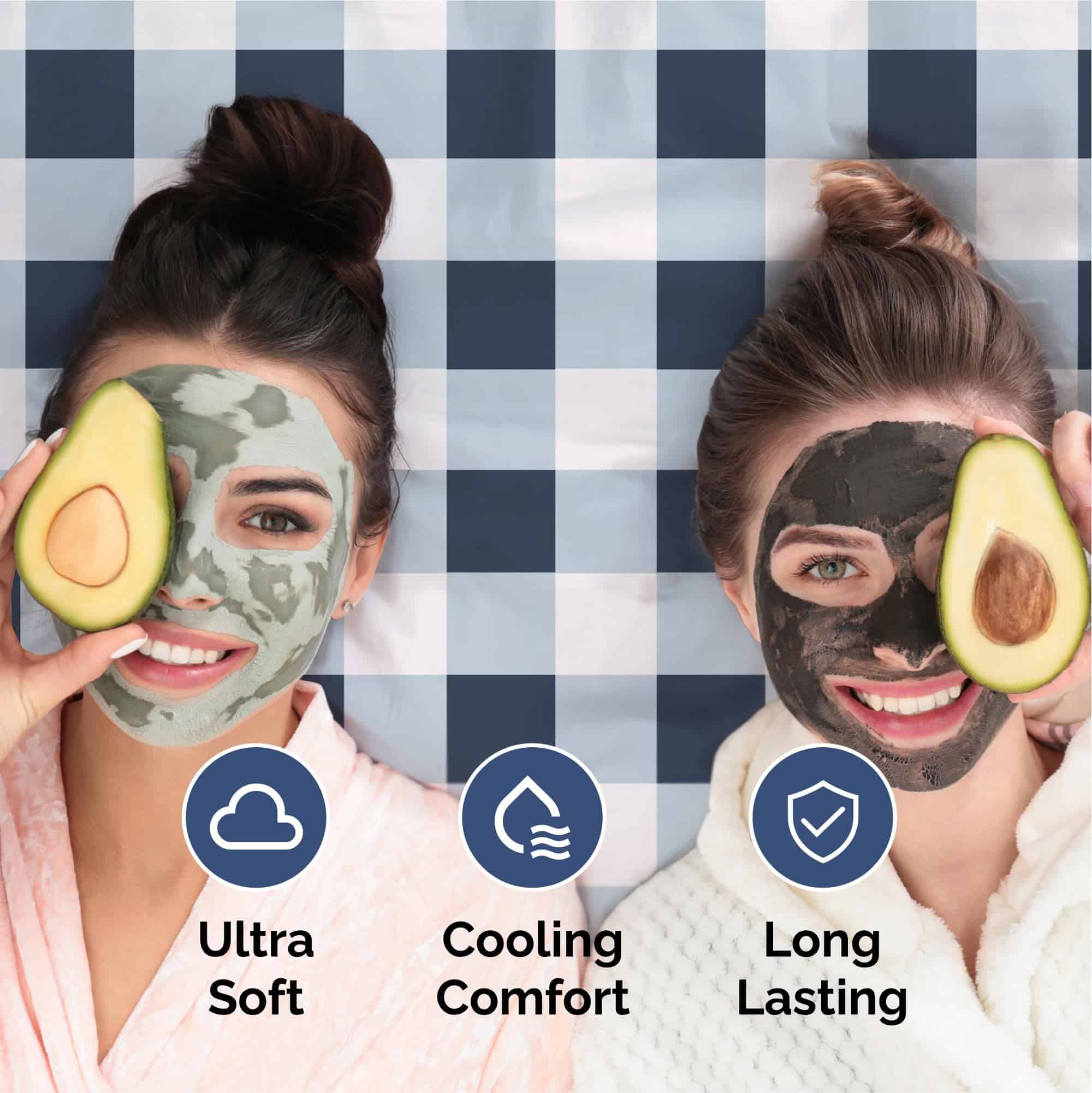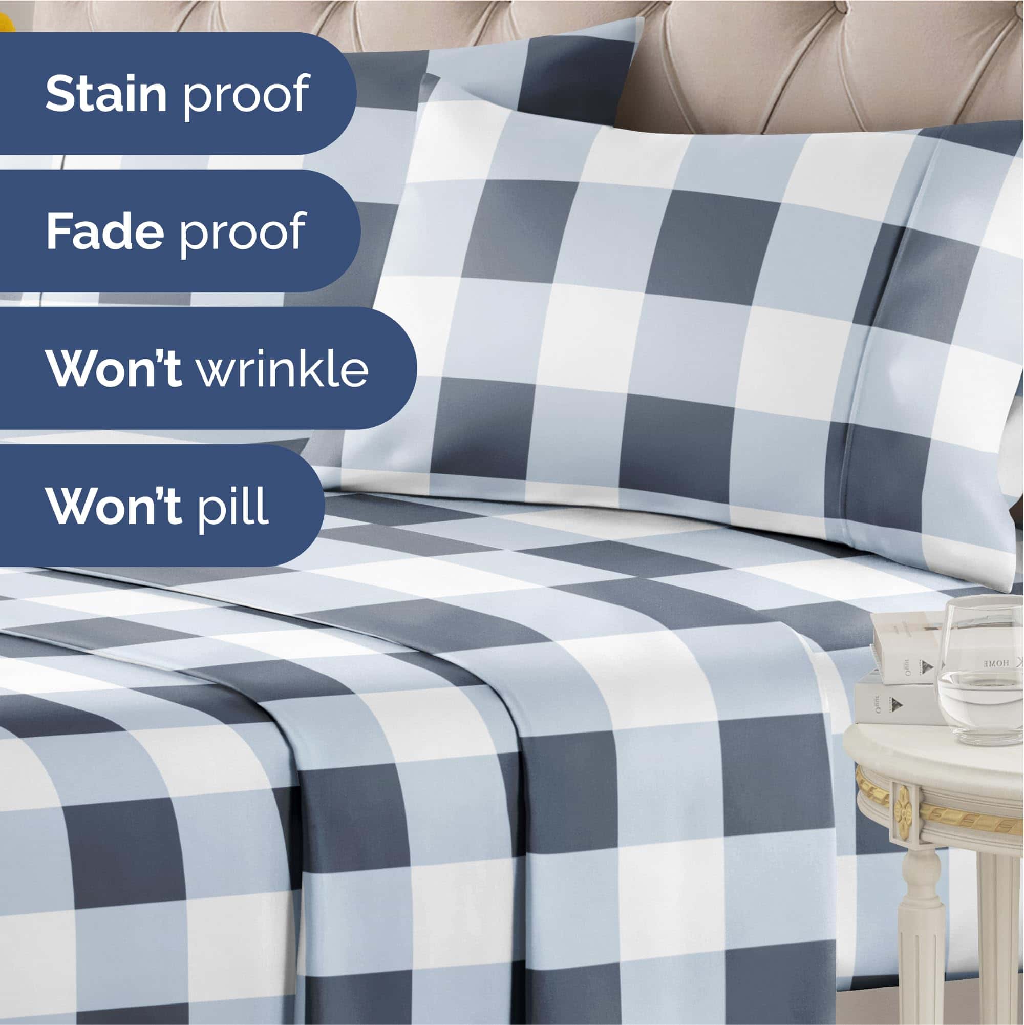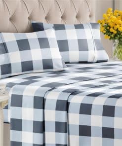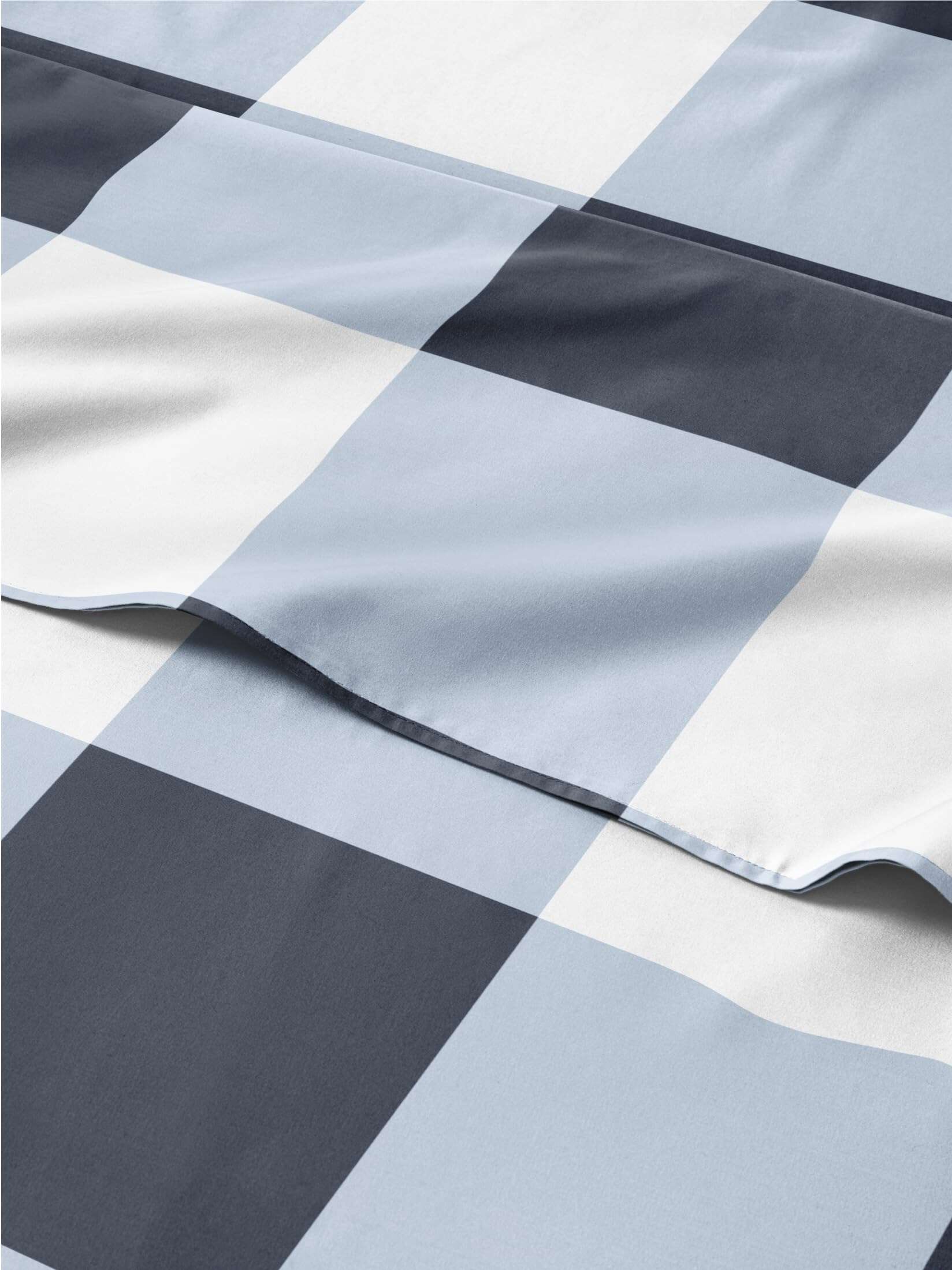 Sábanas de gingham azul y blanco de la reina, cuadros de cama de celosía a cuadros cuadriculados ropa de cama algodón patrón vertical de bolsillos profundos de seda de bambú en el hotel microfibra juego de sábanas y fundas de almohada de lujo habitación decoración hombres ropa de cama de lino premium orgánica que refresca patrón de patrones