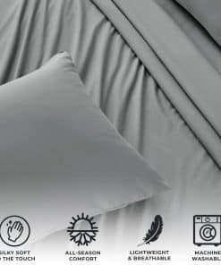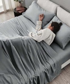 2. Transpirables, frescas, sedosas: estas sábanas asequibles hechas de rayón derivado de bambú se sienten sedosamente suaves contra tu piel. Son transpirables, frescas y perfectas para las personas que duermen en lugares cálidos. Estos juegos de sábanas y fundas de almohada son los conjuntos de ropa de cama perfectos para una decoración de habitación moderna.