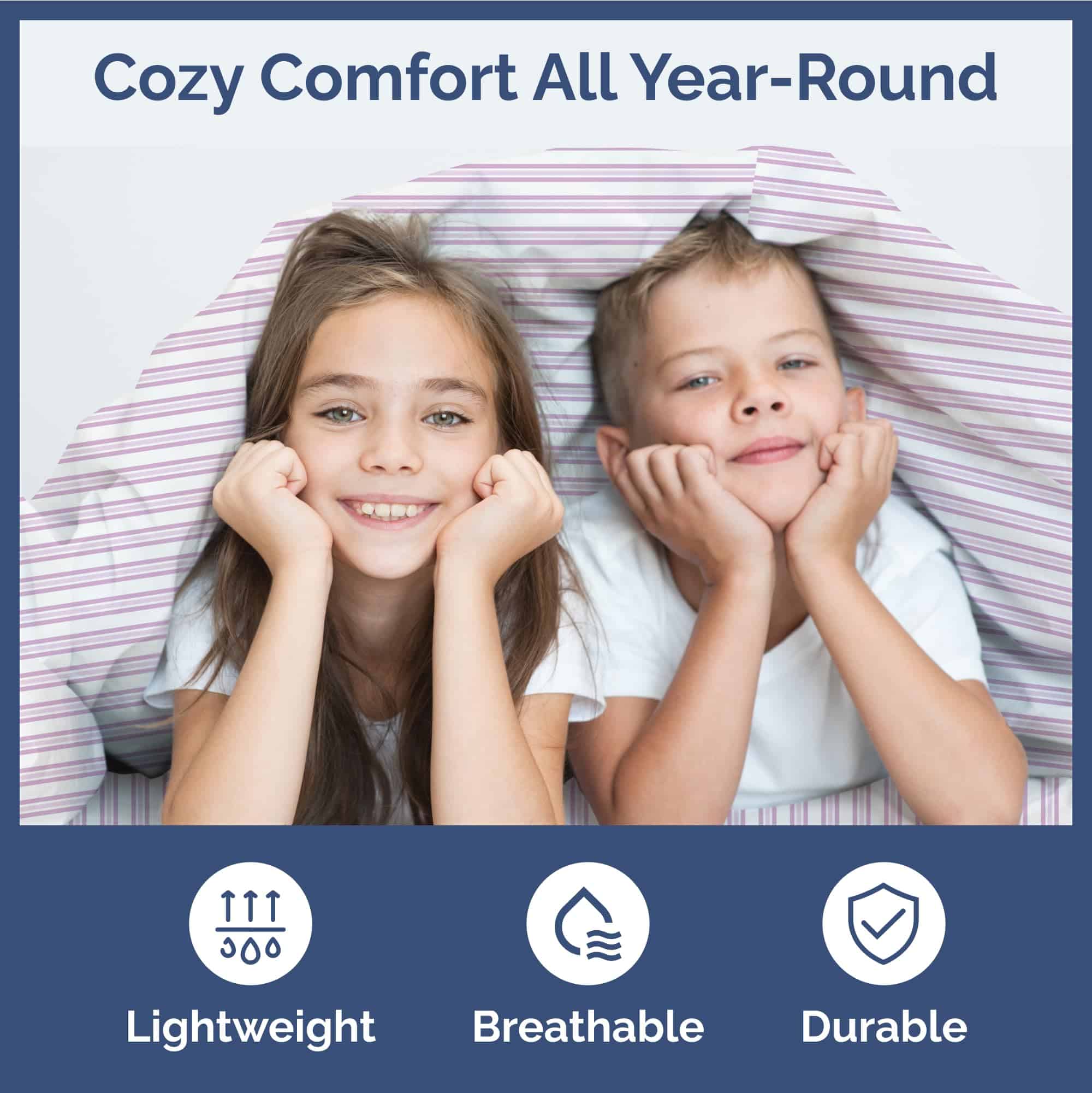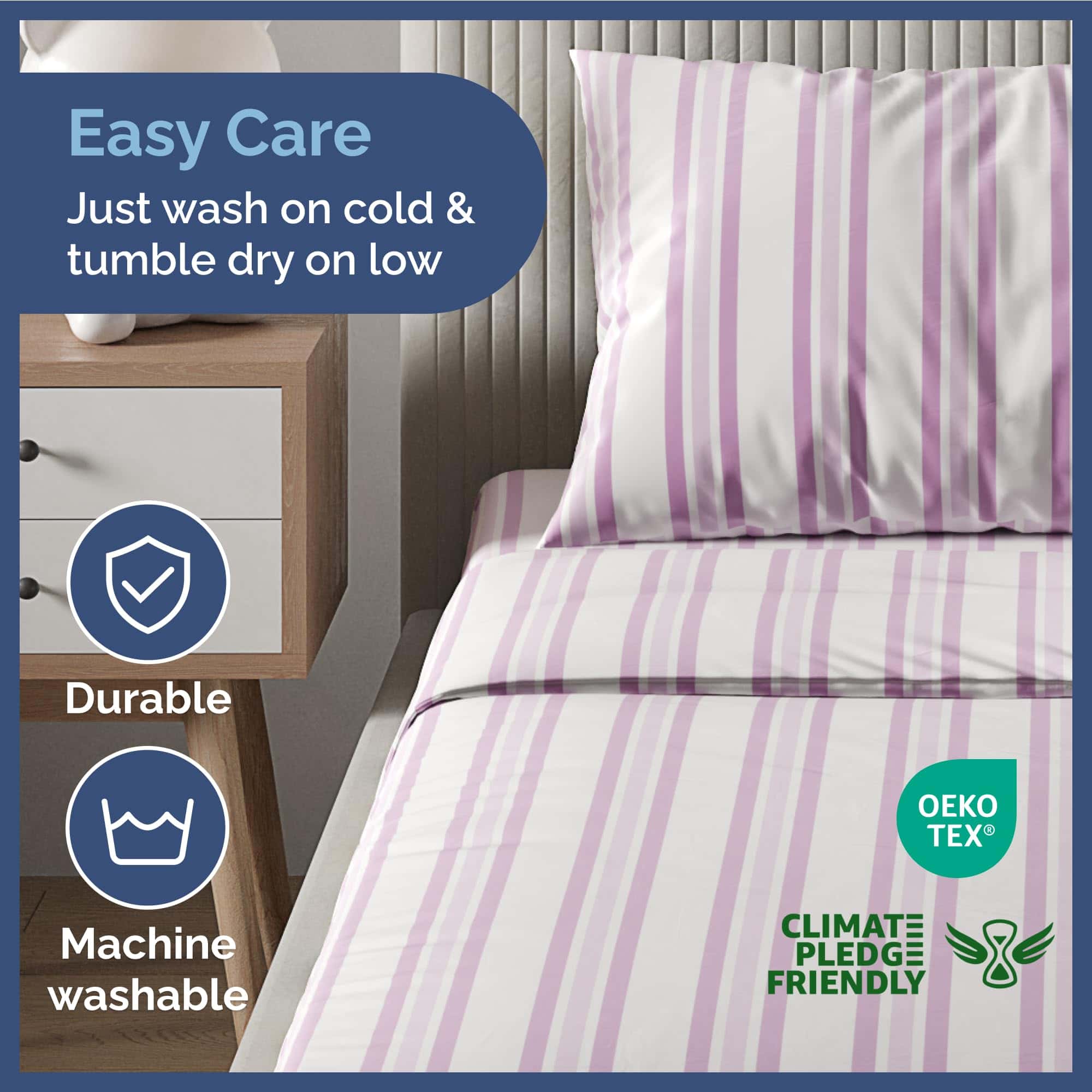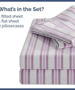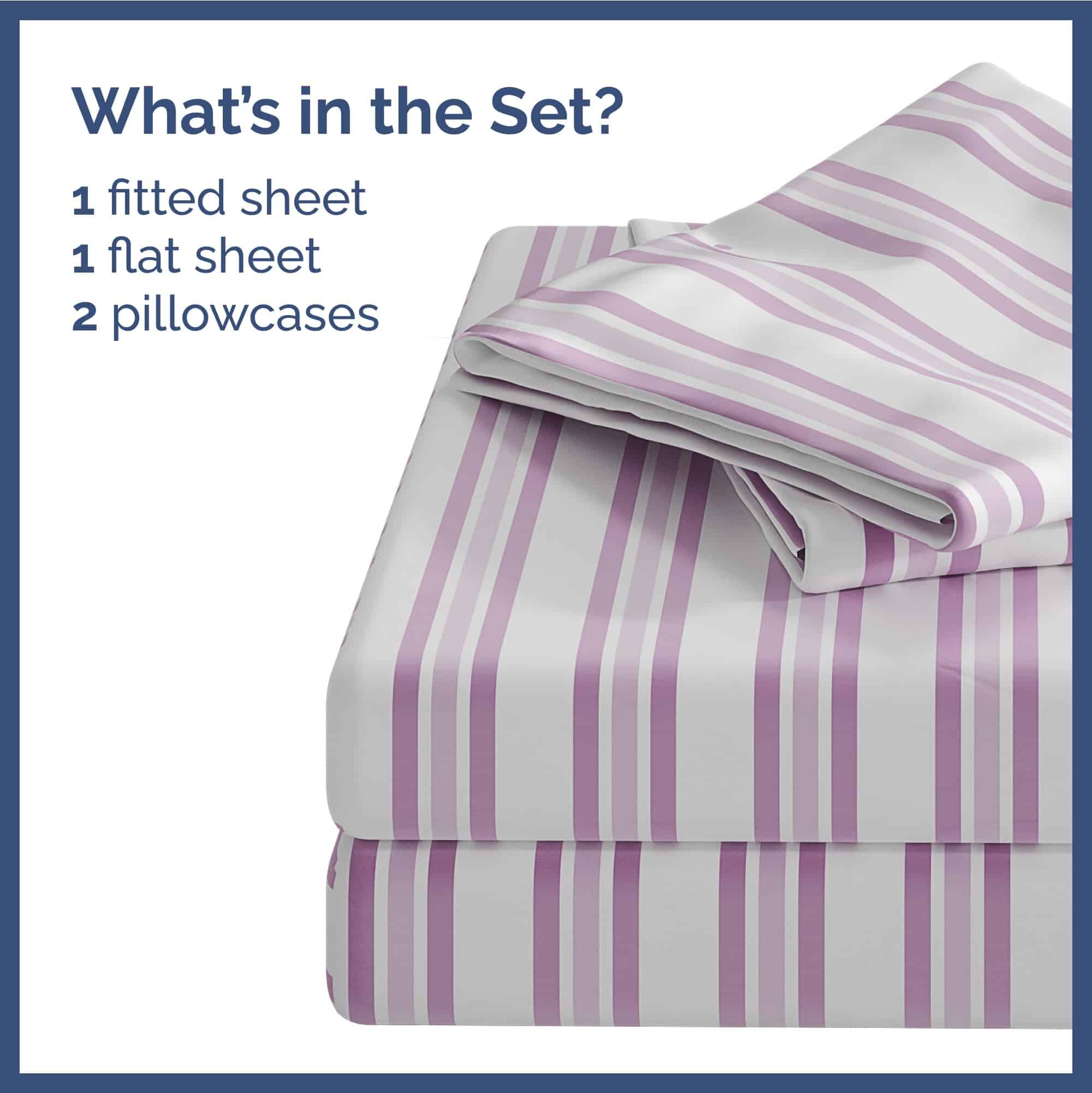 Juego de sábanas de 4 piezas para niños de rayas rosas