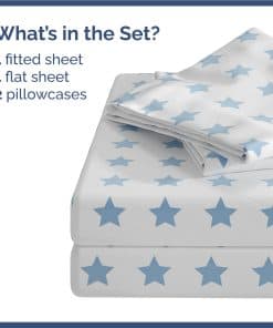 5. PERFECTAMENTE TAMAÑO PARA TU PEQUEÑO: Juego de sábanas tamaño reina de 4 piezas. Dimensiones adaptadas para ajustar: 1 sábana plana (90 x 102 ), 1 sábana ajustable (60 x 80 ), y 2 fundas de almohada (20 x 30 ). Cada pieza está diseñada para un ajuste perfecto.