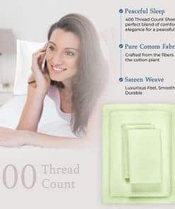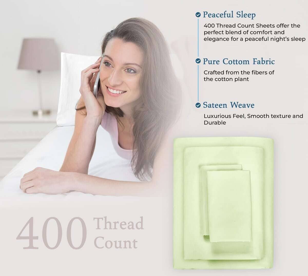 1. 100% ALGODÓN AMERICANO PREMIUM & LUXUOSO TEJIDO SATÉN: Los Juegos de Sábanas de 400 Hilos de Royale Linens están fabricados con la mejor calidad de algodón 100% americano. Haciéndolos transpirables, cómodos y acogedores. Con nuestro tejido satén premium, experimenta el lujo y la comodidad como nunca antes, lávalos antes del primer uso para desbloquear la suavidad.