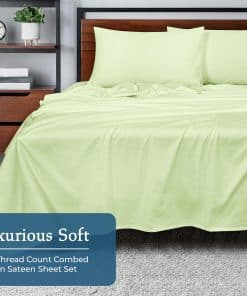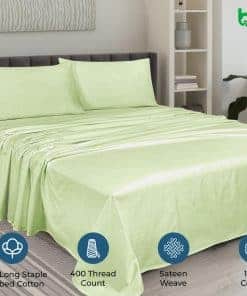 Juego de Sábanas de 4 piezas Queen de Sábana Plana, Sábana Ajustable y 2 Fundas de Almohada. Nuestras sábanas de algodón de 400 hilos son transpirables, frescas y súper suaves como la seda. El tejido está procesado para que sea resistente al encogimiento y a la decoloración. Perfecto para dormitorio, habitación de invitados, habitación de niños, hoteles. Gran idea de regalo para hombres y mujeres en el Día de San Valentín, Día de la Madre, Día del Padre y Navidad. Certificado OEKO-TEX – MADE IN GREEN: Nuestros juegos de sábanas de satén de 400 hilos 100% algodón están certificados Standard 100 por Oeko-Tex. Según las pautas, estos productos se prueban para detectar sustancias nocivas y se producen de manera respetuosa con el medio ambiente y socialmente responsable. También son sostenibles de acuerdo con las pautas de Oeko-Tex. Instrucciones de cuidado: Las sábanas de algodón de Royale Linens están diseñadas para soportar lavados repetidos. Lavar a máquina en frío, solo blanqueador sin cloro, secar en secadora o planchar a temperatura normal. Lavar antes del primer uso para desbloquear la suavidad.