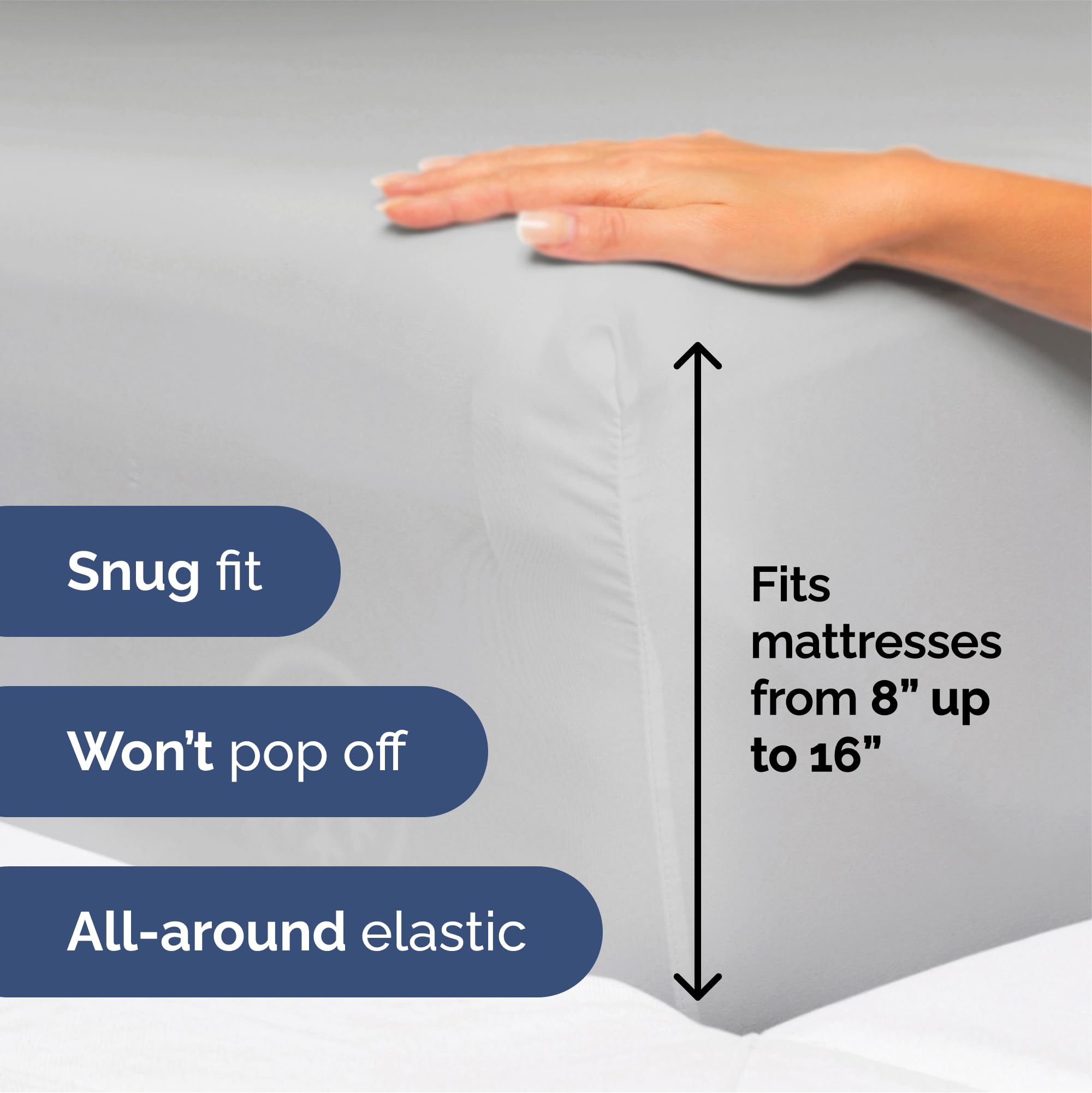 Juego de sábanas de lujo Queen Size de 4 piezas en gris suave. Este juego incluye 2 fundas de almohada, una sábana plana y una sábana ajustable. La sábana plana mide 102 x 90 pulgadas, la sábana ajustable mide 80 x 60 pulgadas y las fundas de almohada miden 20 x 30 pulgadas. Las sábanas tienen bolsillos profundos que se ajustan a colchones de hasta 16 pulgadas de profundidad, lo que las hace versátiles y fáciles de colocar.
